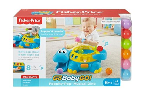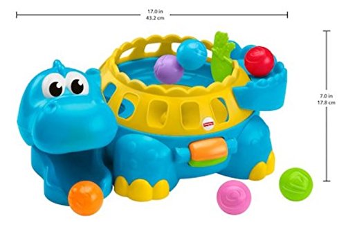 Tons of ball-poppin' fun! Balls pop up...or, surprise!...roll down the dino's tail and tight out of his mouth. Bat-at roller lets baby start the action with 8 silly tunes and fun sounds, helping baby understand cause & effect. And grasping, dropping and chasing the 6 colorful balls gives baby's motor skills a great workout!Feature