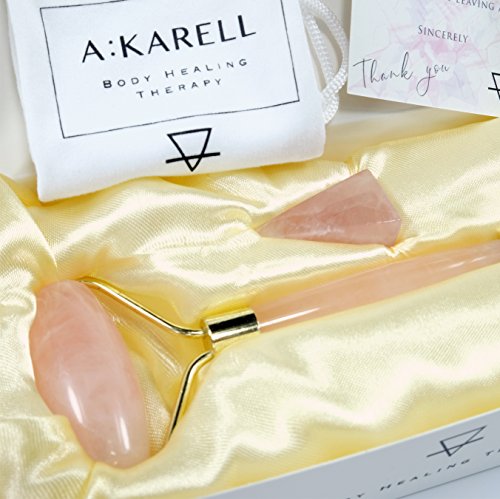100% ROSE QUARTZ: The Premium Akarell Rose Quartz Chi roller and Crystal Pyramid Cha set is made of real Rose Stone. We are only sourcing the highest quality jade from Brazil to craft the best handmade products. Our stone face massager tools can be use once you've applied your hydrator, serum, cream or moisturizing mask to rejuvenate your face and neck muscles.