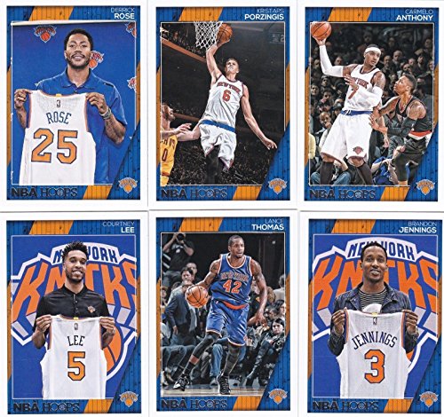 This is a brand new 2016 / 2017 New York Knicks Hoops Basketball Factory Sealed NBA Licensed 6 Card Team Set including Derrick Rose, Carmelo Anthony, Kristaps Porzingis, Courtney Lee, Lance Thomas and Brandon Jennings.