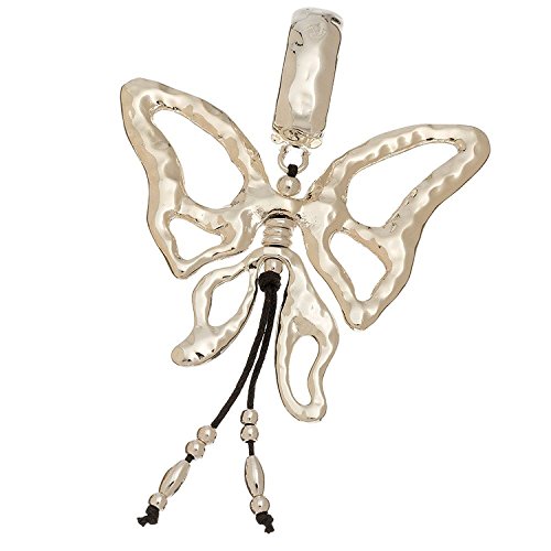 - The pendant is a polished and textured metal butterfly pendant with its parts attached to a string.