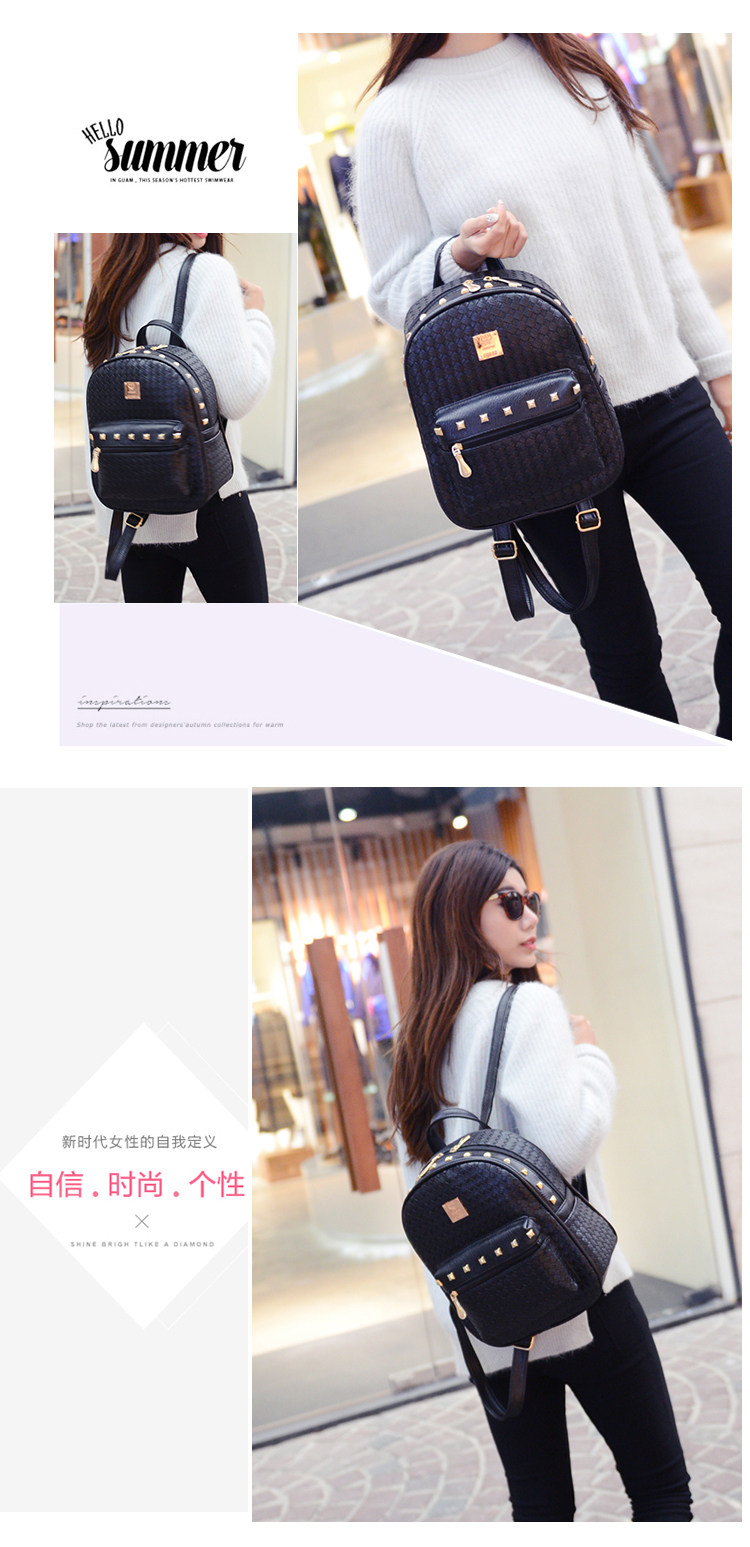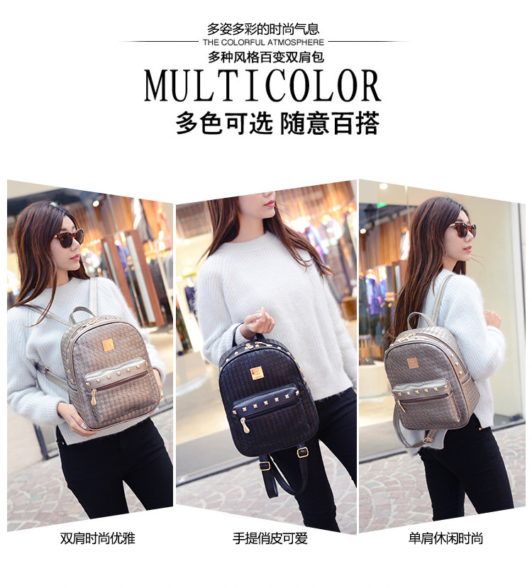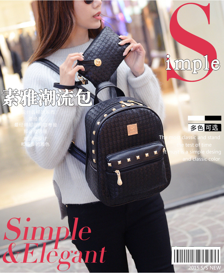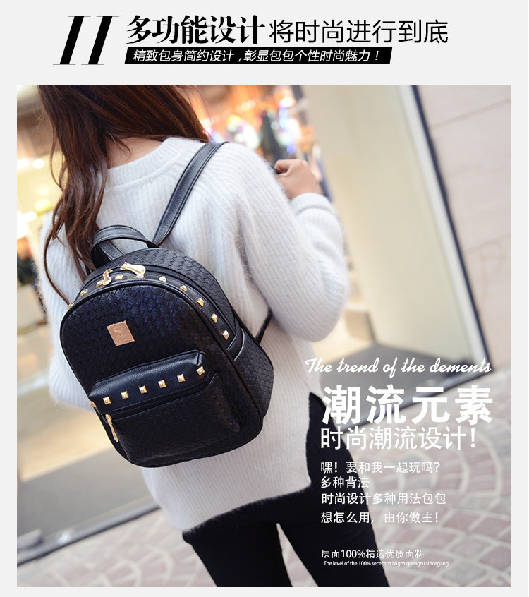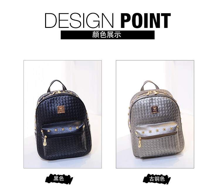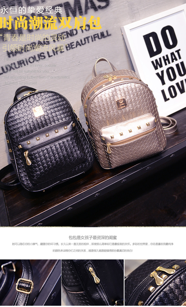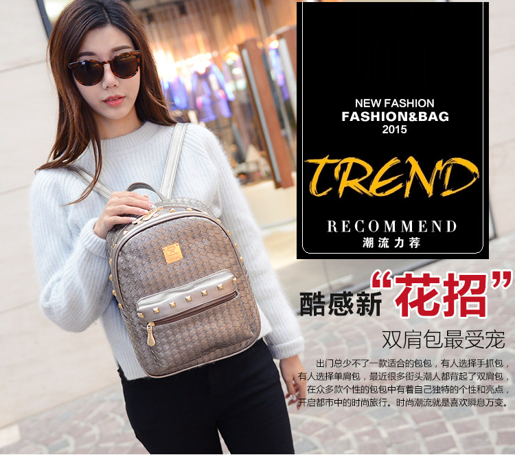 双肩包女背包韩版pu编织包休闲日韩女包学院风女士包包2015新款潮