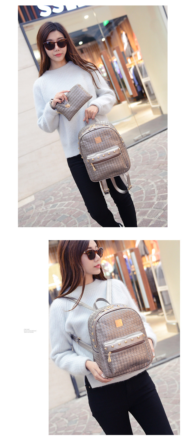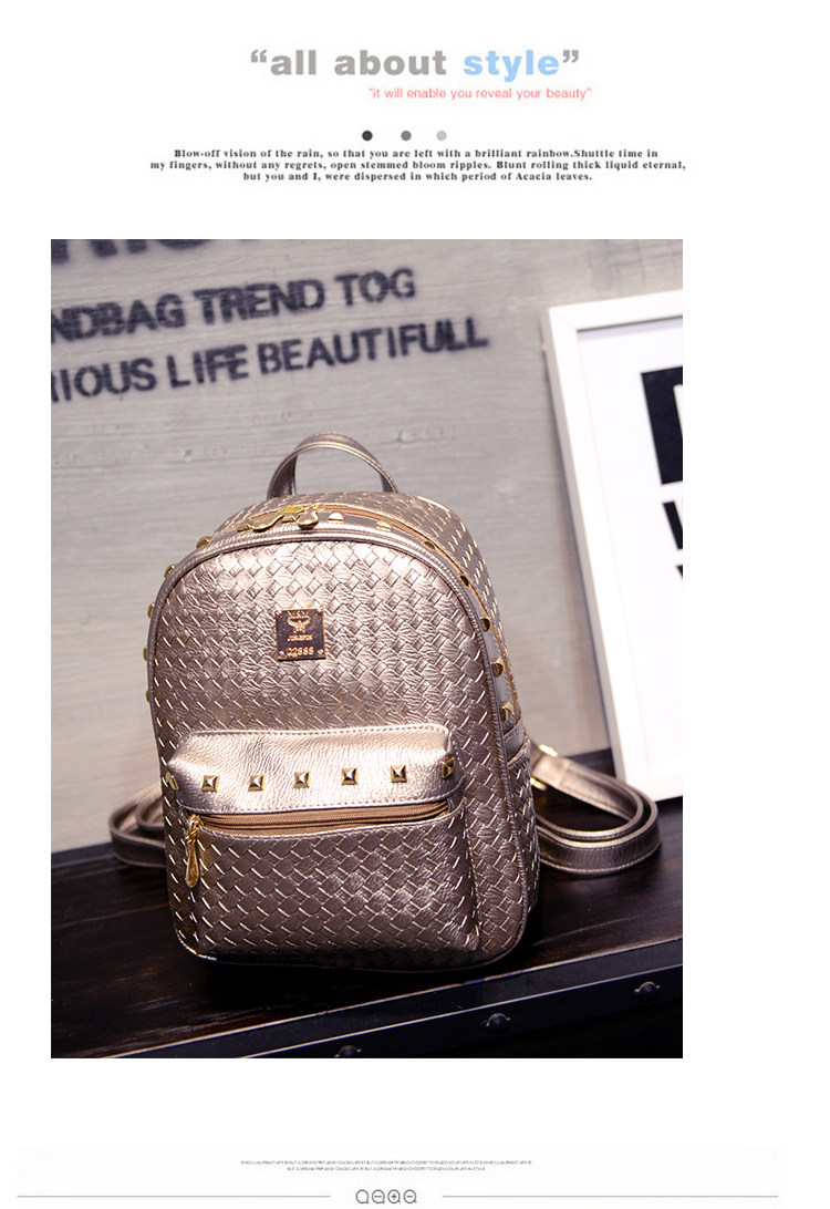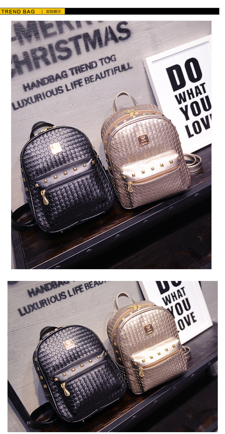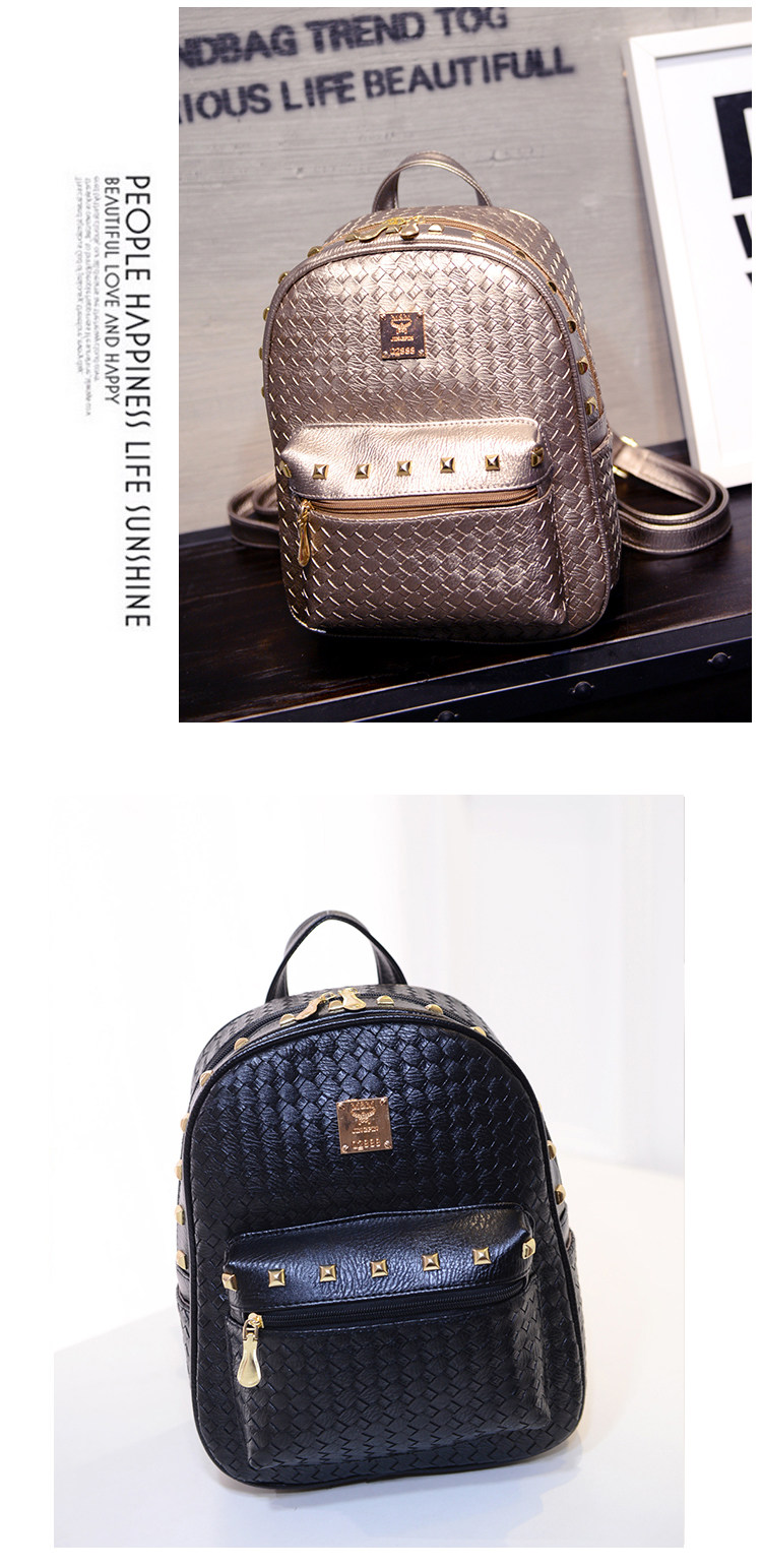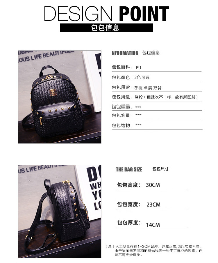 双肩包女背包韩版pu编织包休闲日韩女包学院风女士包包2015新款潮