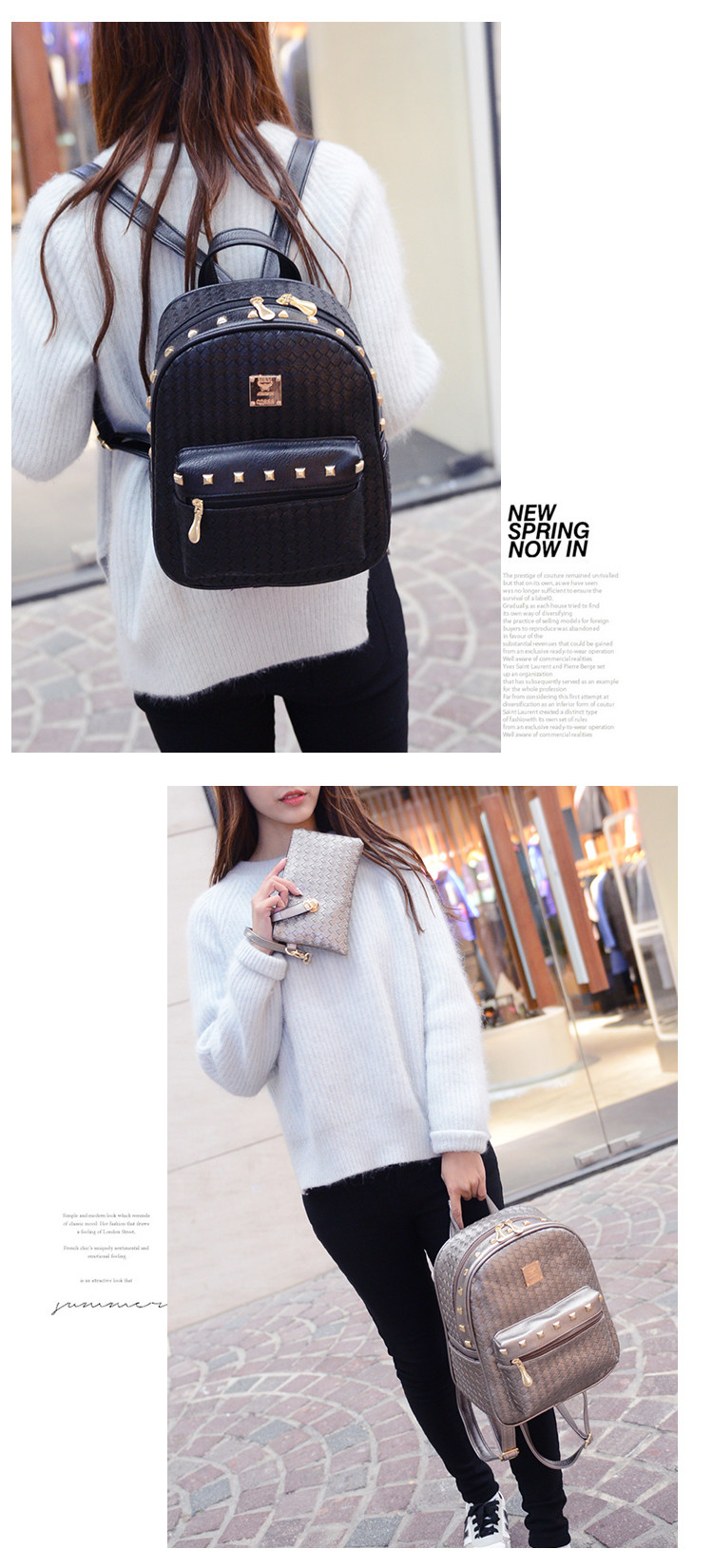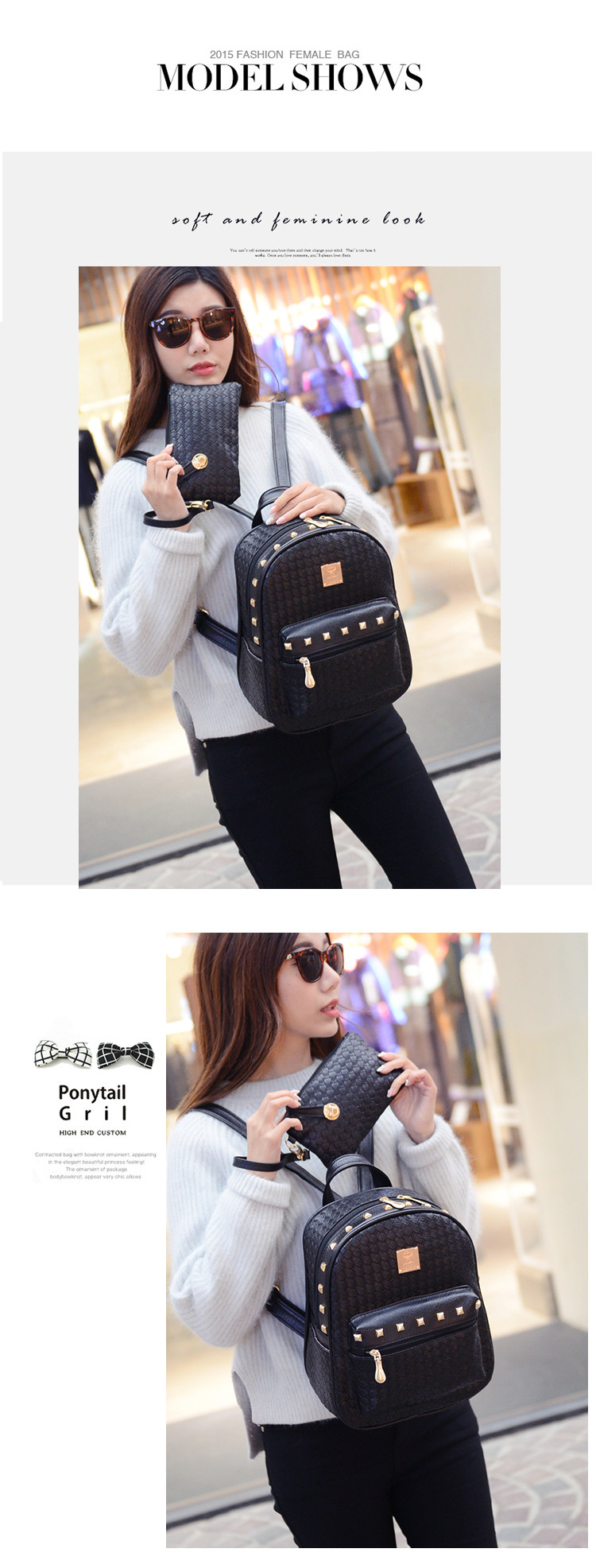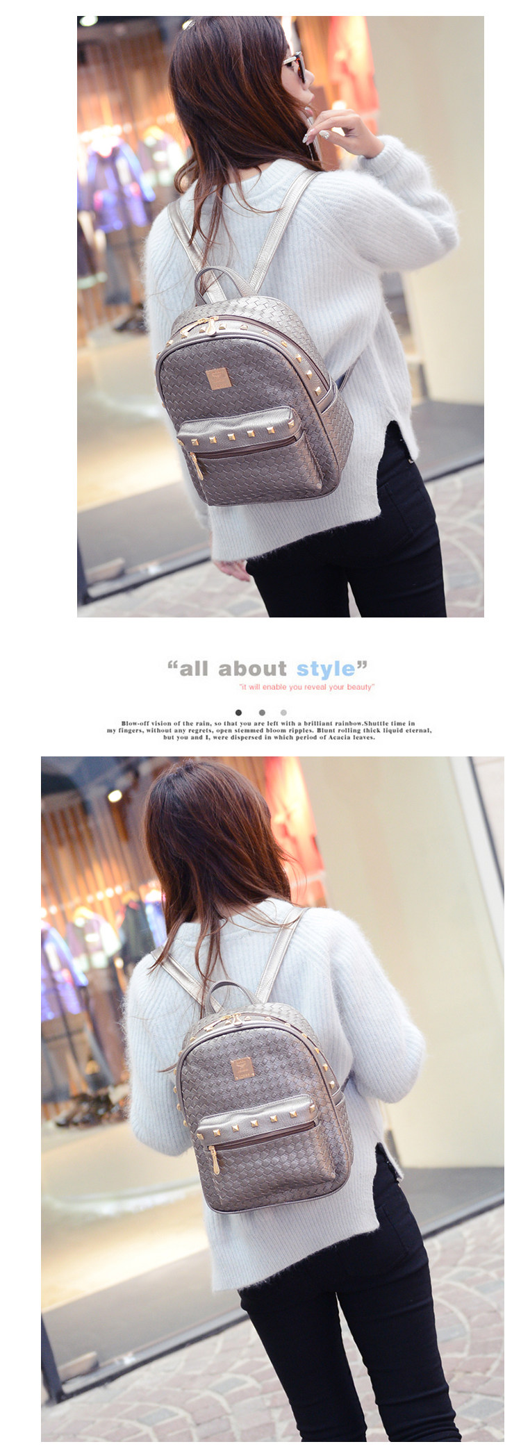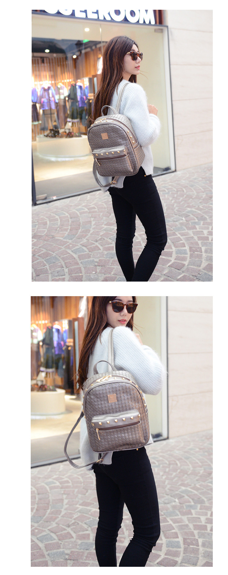 双肩包女背包韩版pu编织包休闲日韩女包学院风女士包包2015新款潮