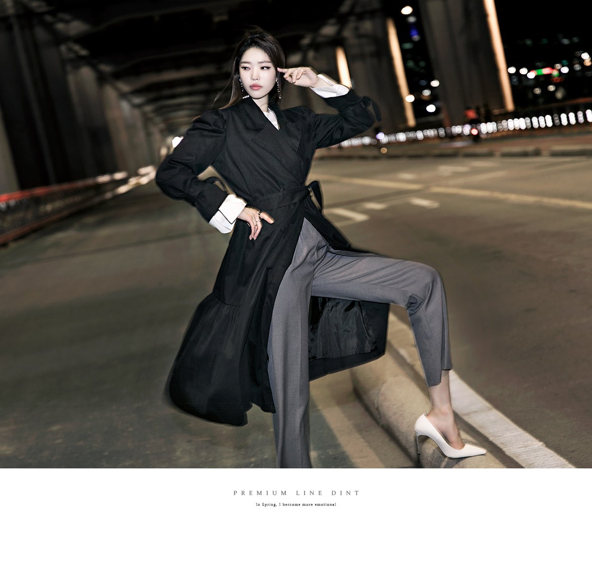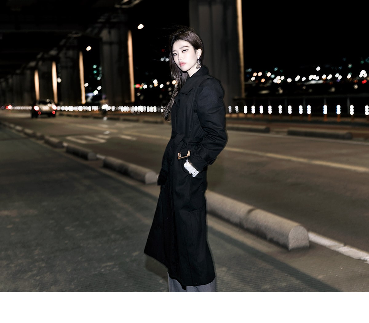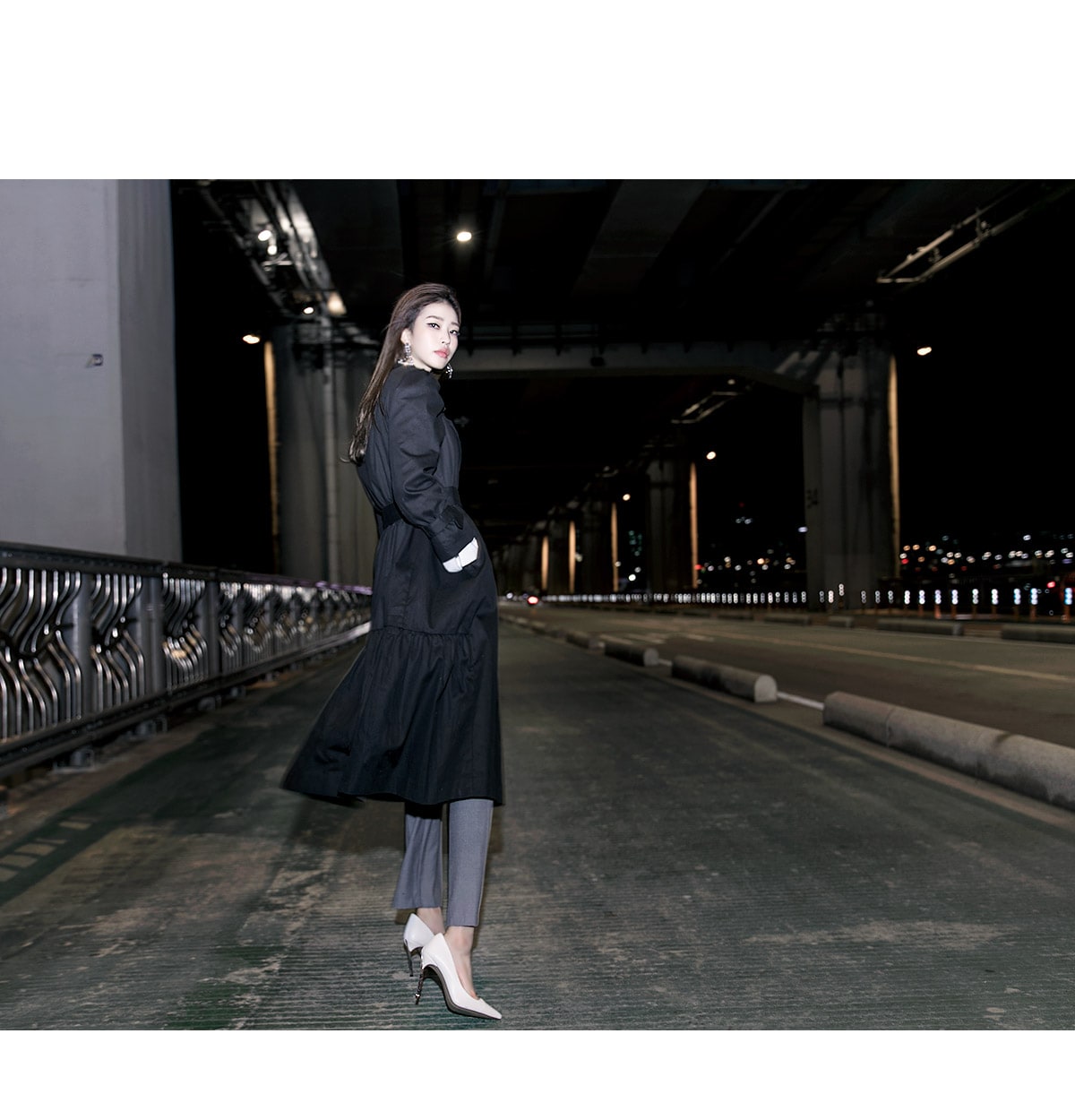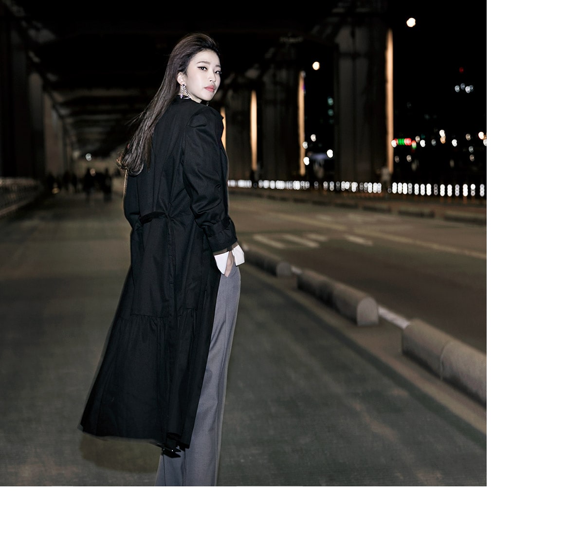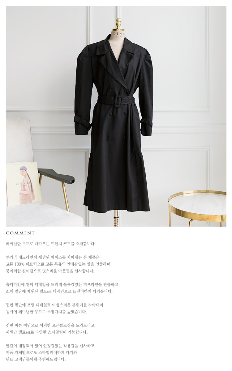 J-5011 모던 백 프릴 트렌치 코트(벨트set) Black