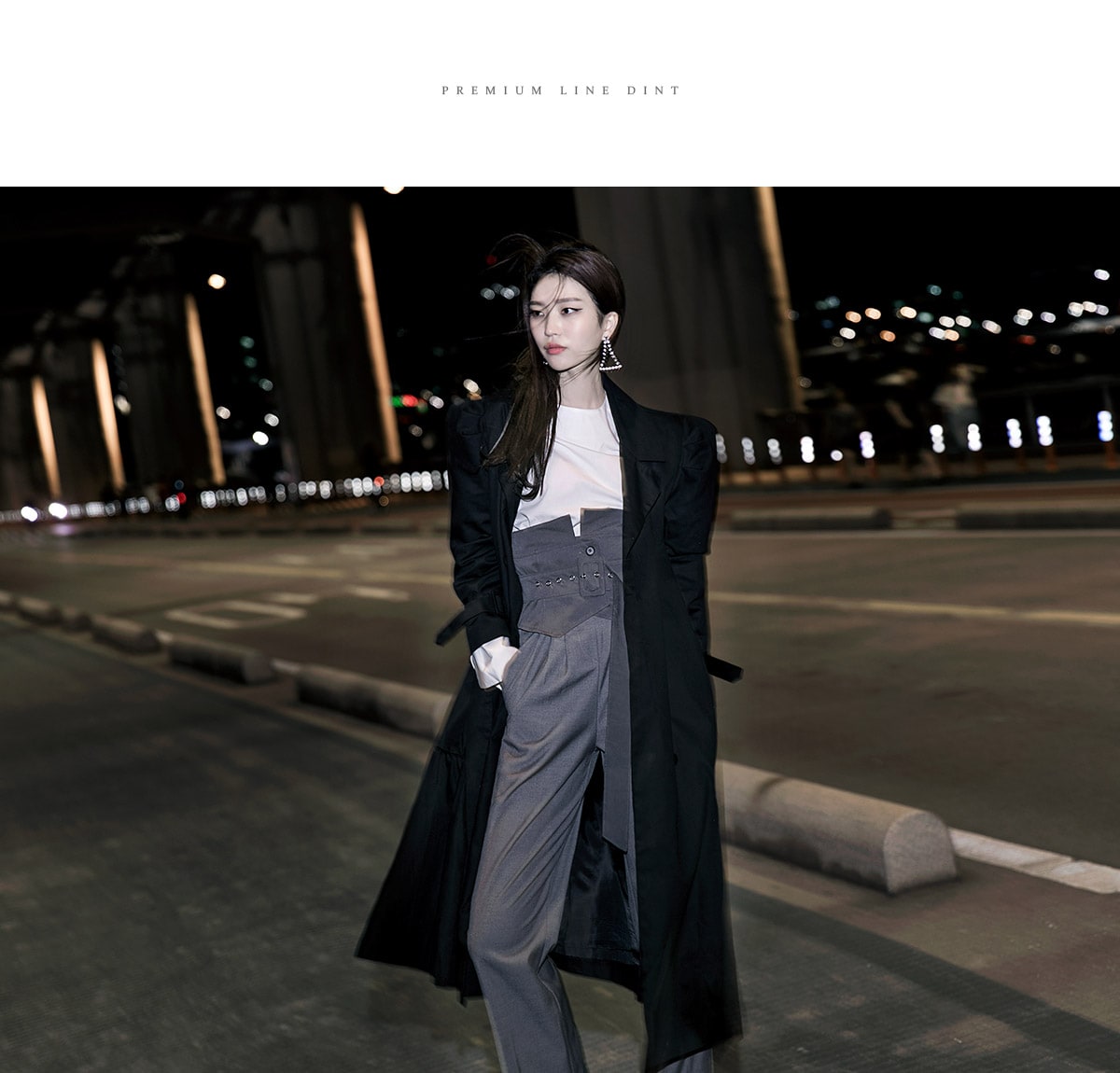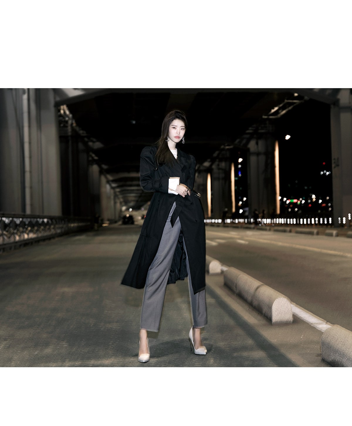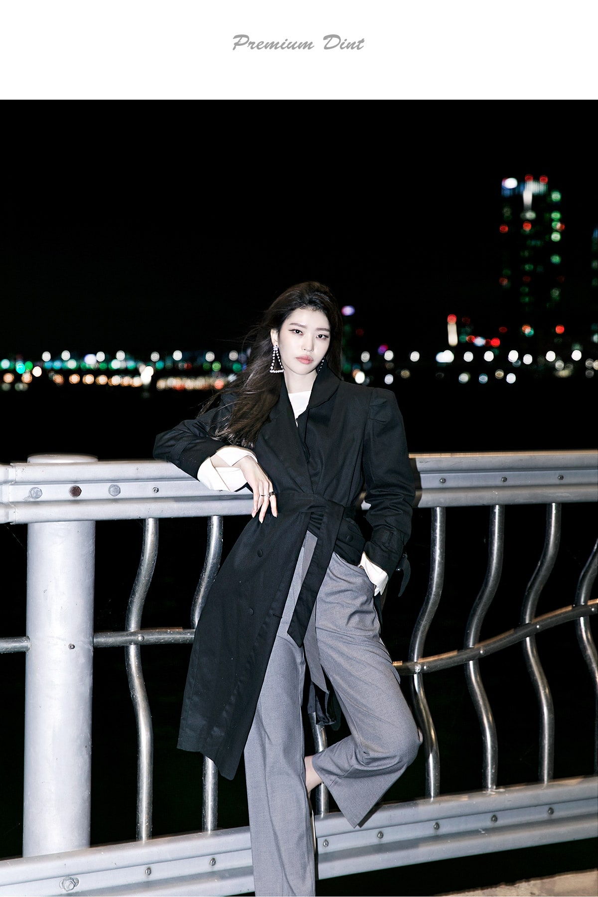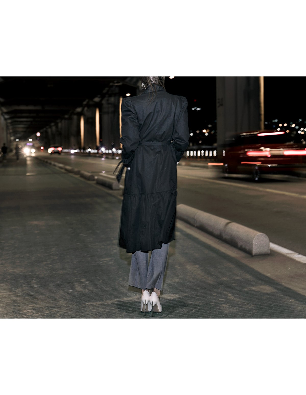 J-5011 모던 백 프릴 트렌치 코트(벨트set) Black