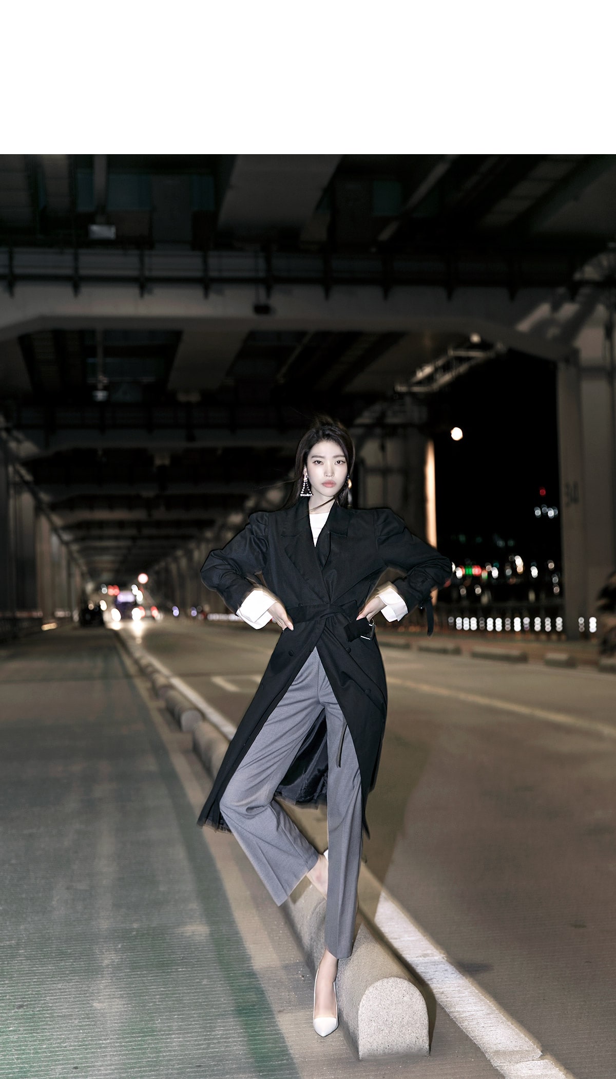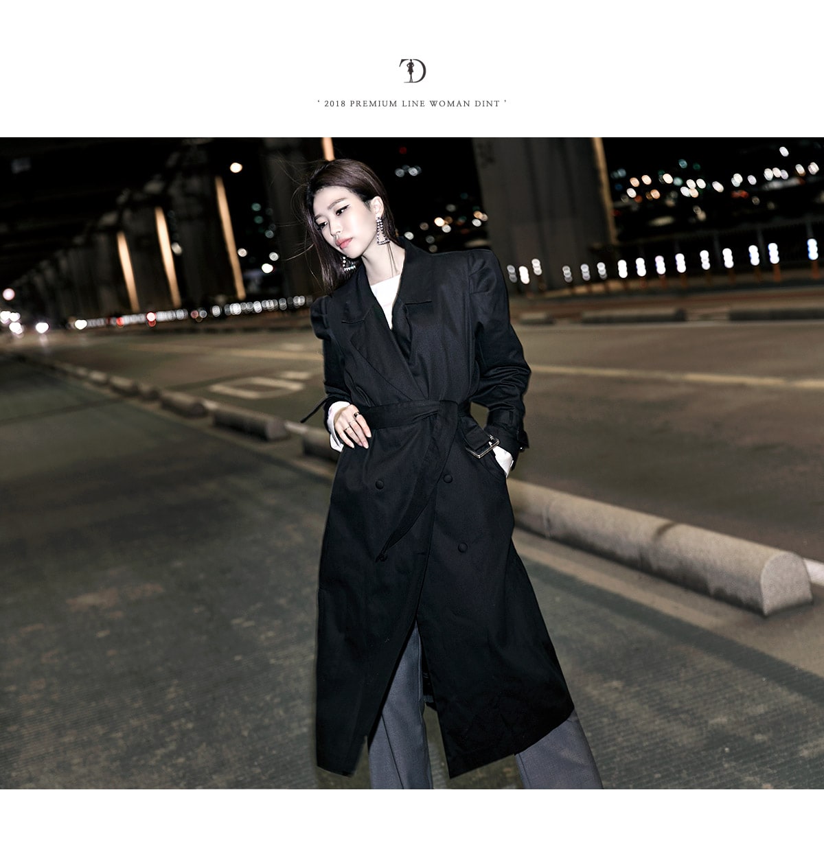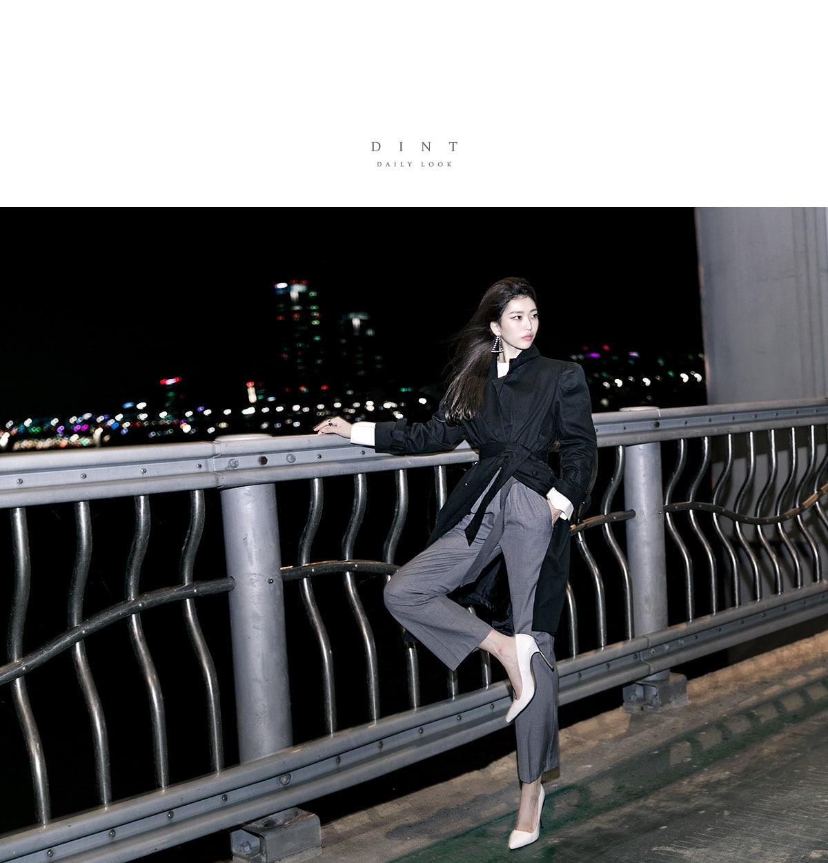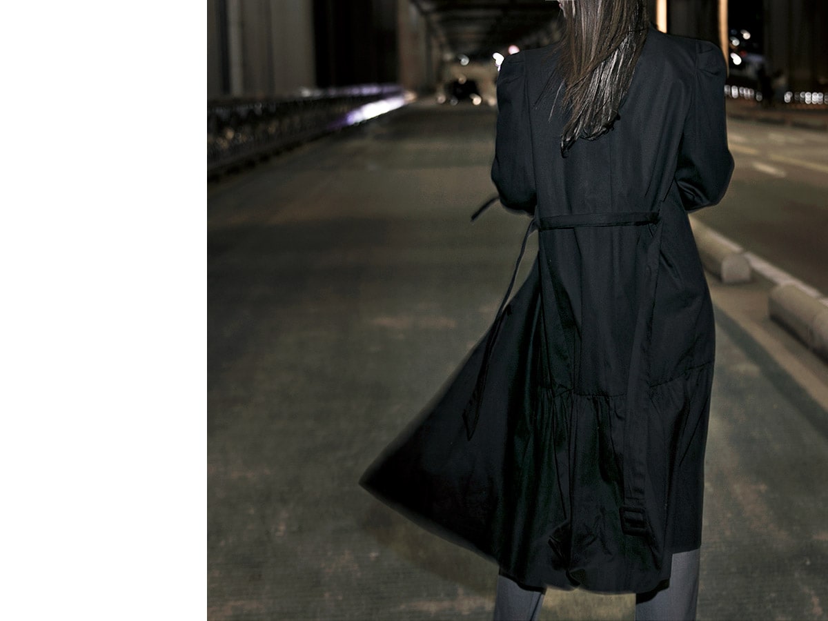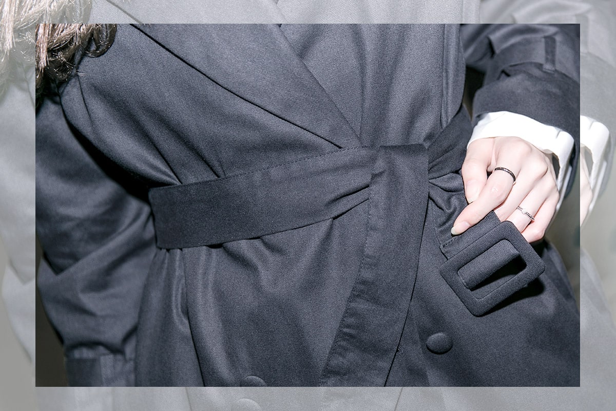 J-5011 모던 백 프릴 트렌치 코트(벨트set) Black