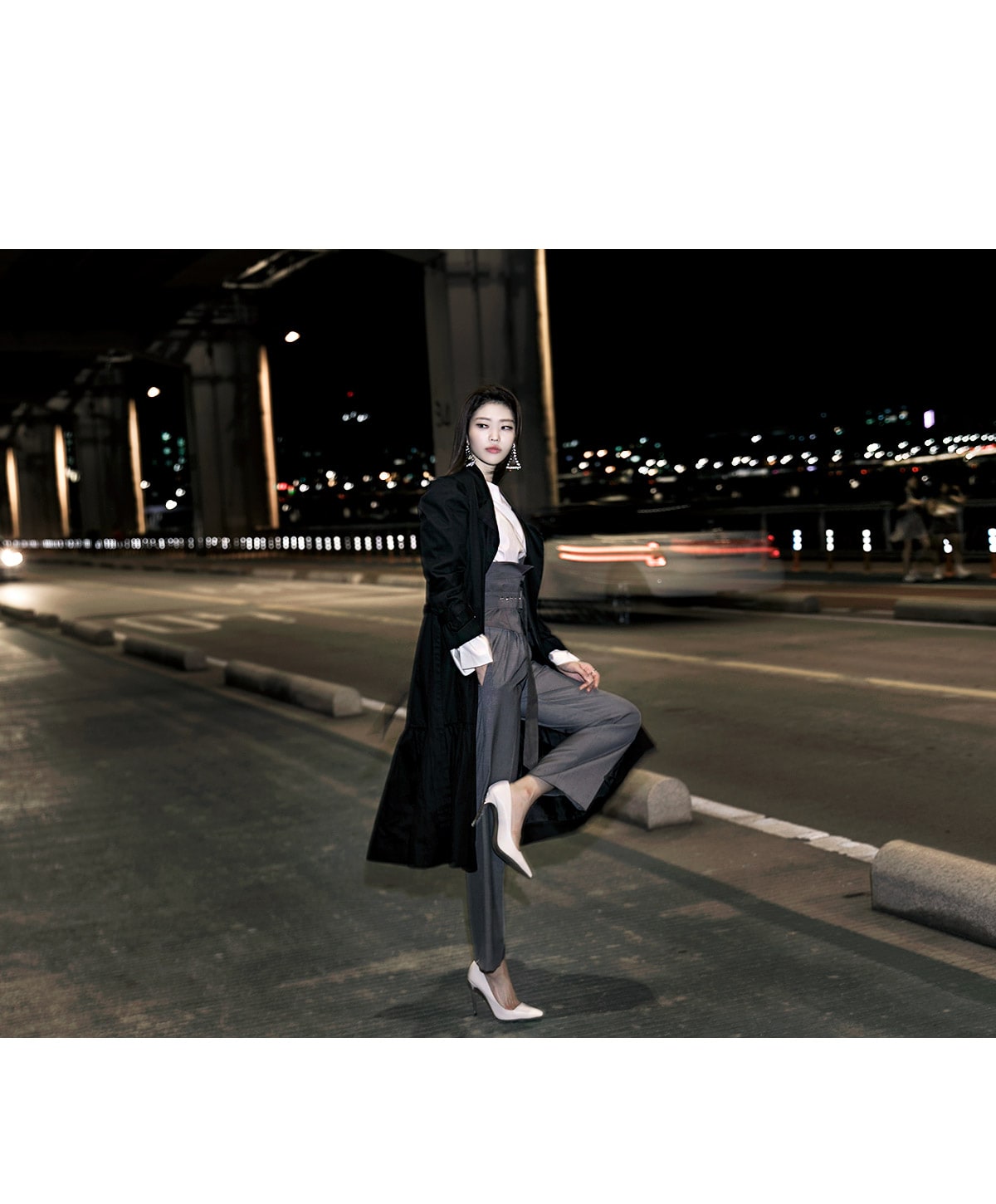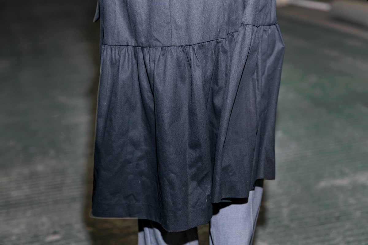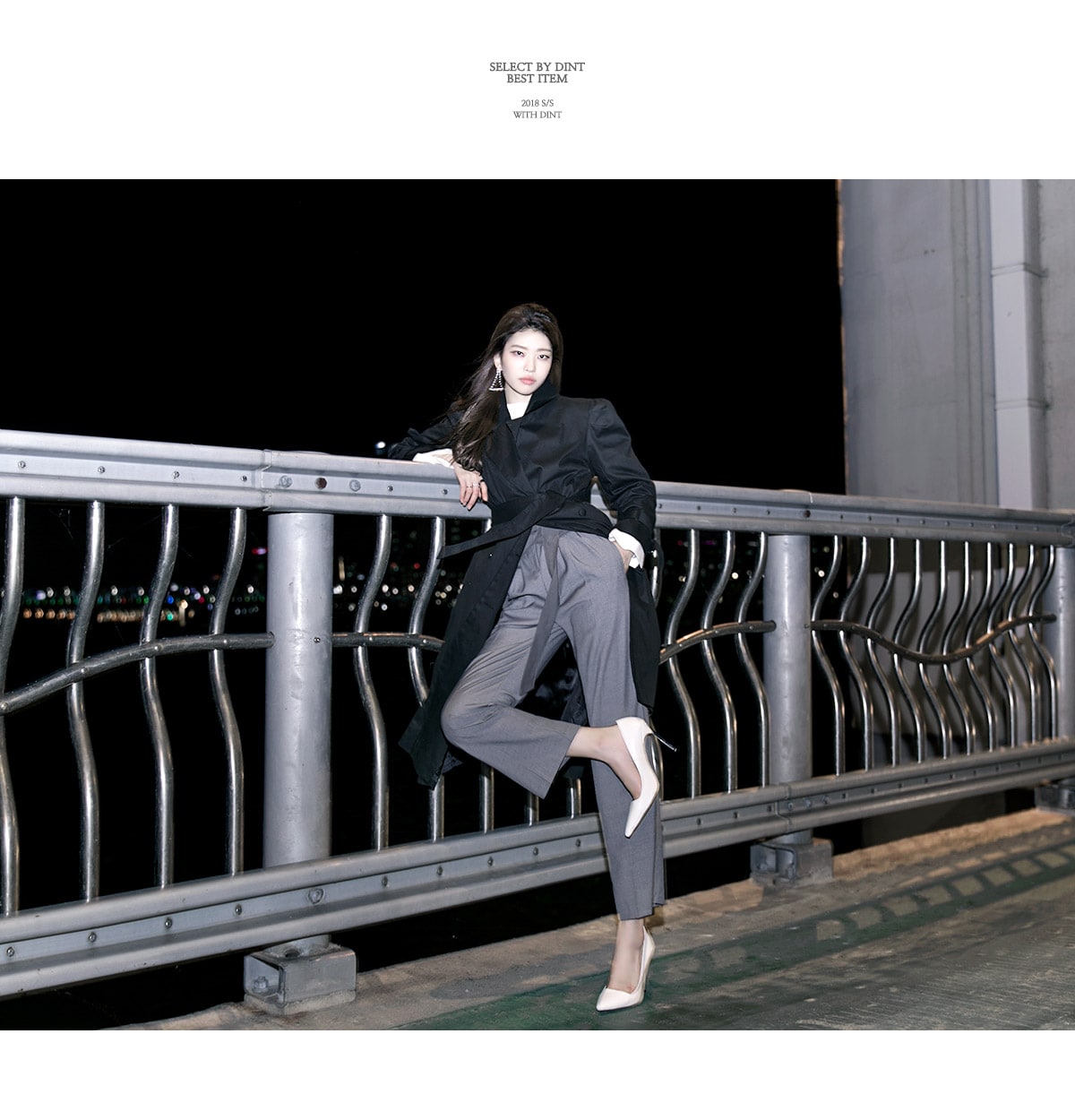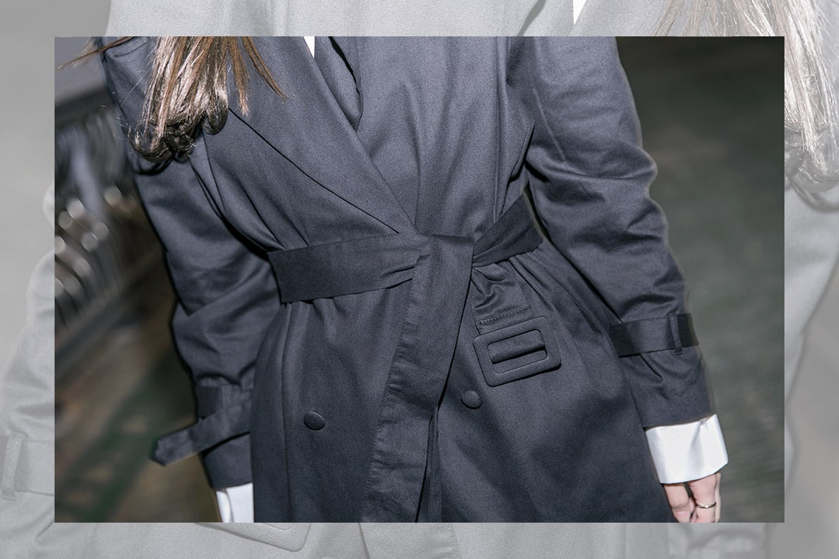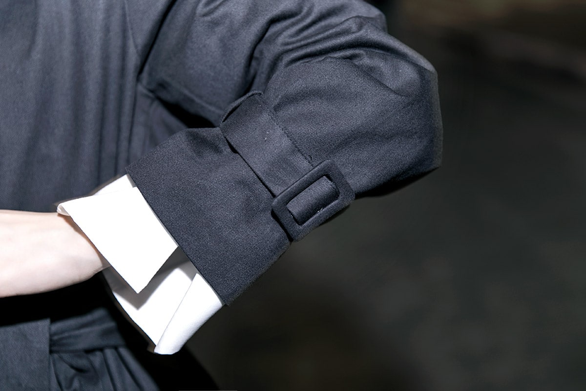 J-5011 모던 백 프릴 트렌치 코트(벨트set) Black