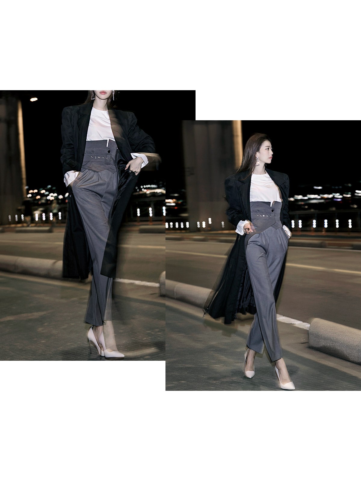 P1921 더블 핀턱 하이 웨이스트 슬랙스 팬츠 Gray