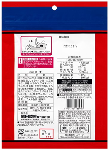 원재료:멥쌀 미(미국산,국산)고, 식물성 기름지,간장(밀 대두를 포함한다)고, 설탕,벌꿀,덱스트린,나오지 않겠 분,향신료(대두를 포함한다)고, 담백 가수분해물(밀을 포함한다)고, 식염,생선 및 조개류 엑기스 파우더(하면을 포함한다)고, 솔《비토루》,가공 나오지 않겠 분,트레이닝 헬로《스》,조미료(아미노산등)고, 파프리카 색소,카라멜 색소,신맛료