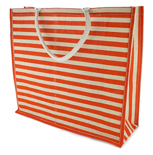 Kel-Toy NBS318-221 Large Stripe Burlap Tote Bag, 19.5”W x 18”H x 8”D, Natural/Orange