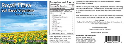 -. Binding : Health and Beauty -. Brand : Wolfe Clinic -. EAN : 0813086012085 -. Feature : Symbiotic proP.R.Ietary blend of Prebiotic/Probiotic Consortia with Soil-Based-Organisms / Made in the USA / No additives or flow agents / Vegetarian capsule -. Label : Wolfe Clinic -. LegalDisclaimer : *These statements have not been evaluated by the FDA. These products are not intended to diagnose, treat, cure, or prevent any disease. -. Manufacturer : Wolfe Clinic -. MPN : TWC-K-RoyF120 -. PackageQuantity : 1 -. PartNumber : TWC-K-RoyF120 -. ProductGroup : Health and Beauty -. ProductTypeName : HEALTH_PERSONAL_CARE -. Publisher : Wolfe Clinic -. Studio : Wolfe Clinic -. Title : Royal Flora Soil Based Organisms, 120 Capsules -. UPC : 813086012085