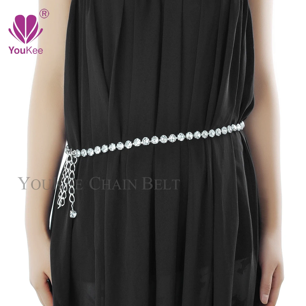 Material: Rhinestone+Alloy Total Length of belt: 105 cm/41.3 in Width of belt : 1.2cm/0.41 inch Weight: 82 g Suitable waistline: 70 cm-105 cm Place of Origin: ZheJiang, China (Mainland) Occasion: Any Party, Daily Life, Vacation And Anniversary Environmental standards: Europe&Nickel,Lead,Cadmium free Item name: Rhinestone Chain Belt Long Metal Belts For Women