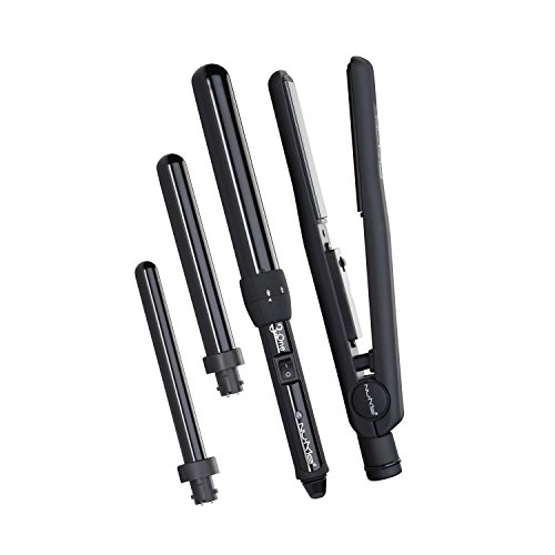 - Three interchangeable, tourmaline infused ceramic wands (19mm, 25mm, 32mm)
