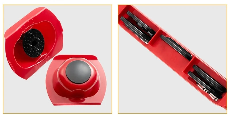 It has its own container for the blades to put, never lose them or spend time looking for them