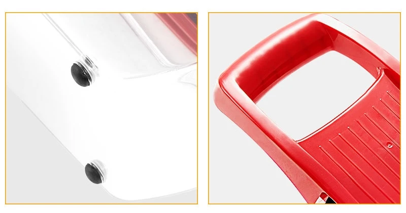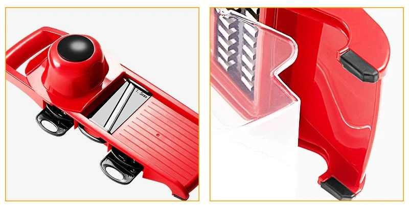 This hand-held slicer made from Food-Grade stainless steel & BPA-Free ABS plastic offers.It offers all the functionality of multiple appliances with changeable stainless blades. These blades can cut through all kinds of vegetable, grating cheese, slicing potato and cutting fruits, even can create paste-like vegetables or mashed potatoes .