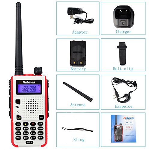 Retevis RT5 Two Way Radio 5W 128 CH VHF/UHF 136-174/400-520 MHz Walkie Takies (1 Pack)