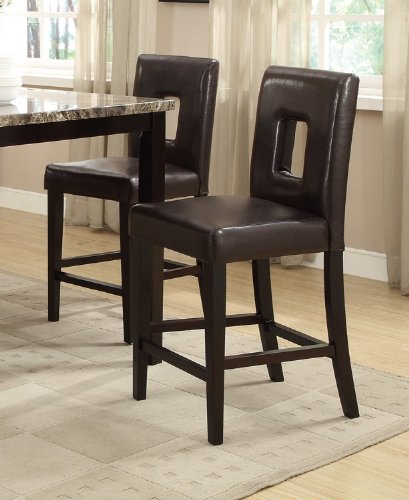 -. Feature : 2 Counter Hieght Chairs / 24" Seat Height / Espresso Veneer / Dark Brown Bonded Leather / Parson Design
