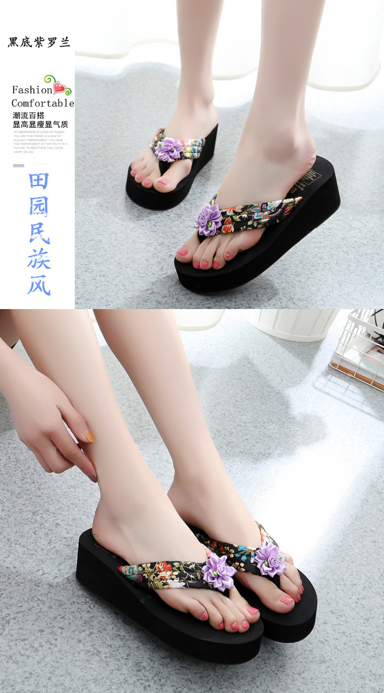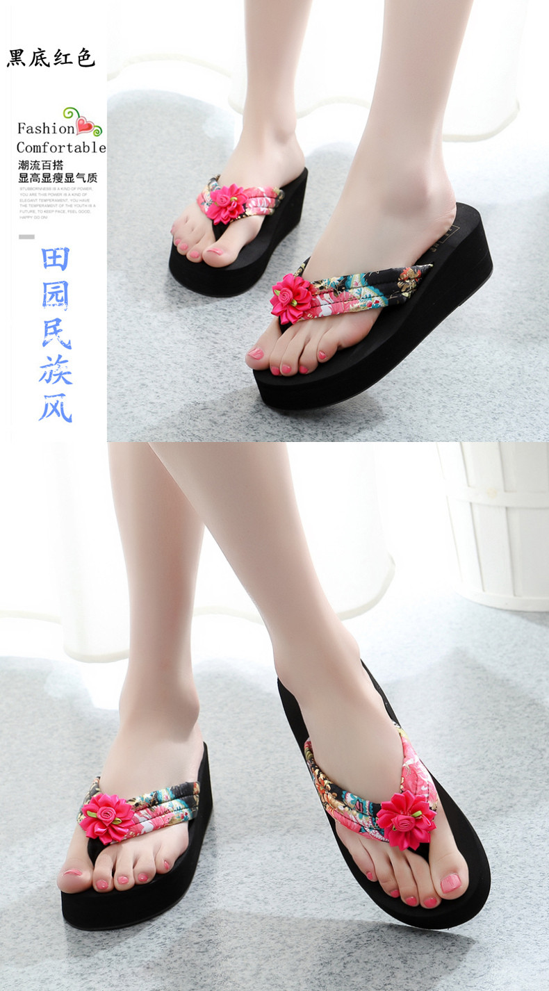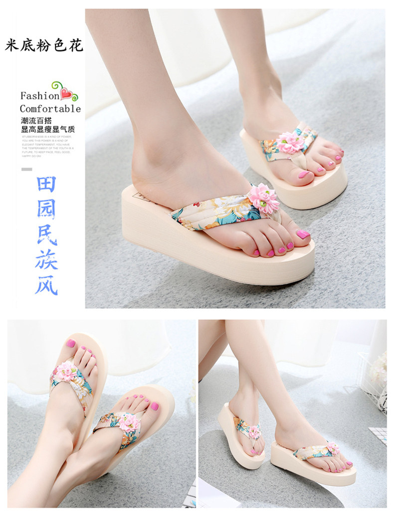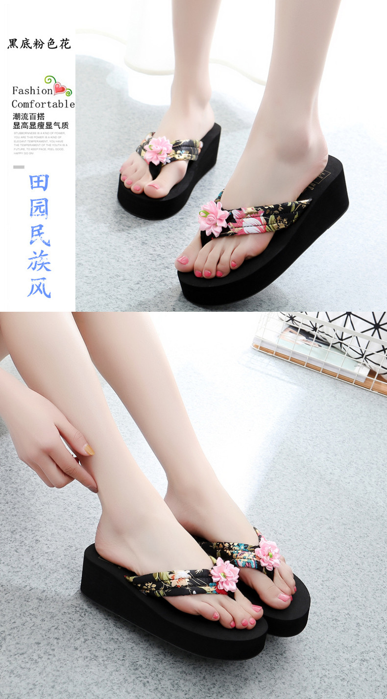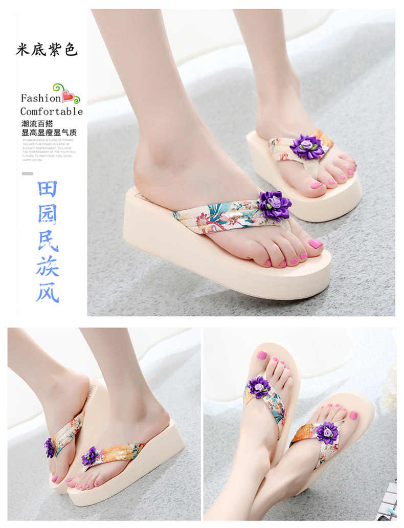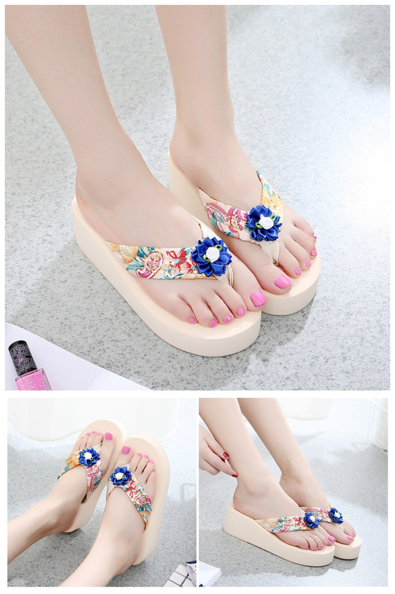 简约绸缎凉拖鞋女夏波西米亚民族风沙滩鞋坡跟厚底人字拖韩版