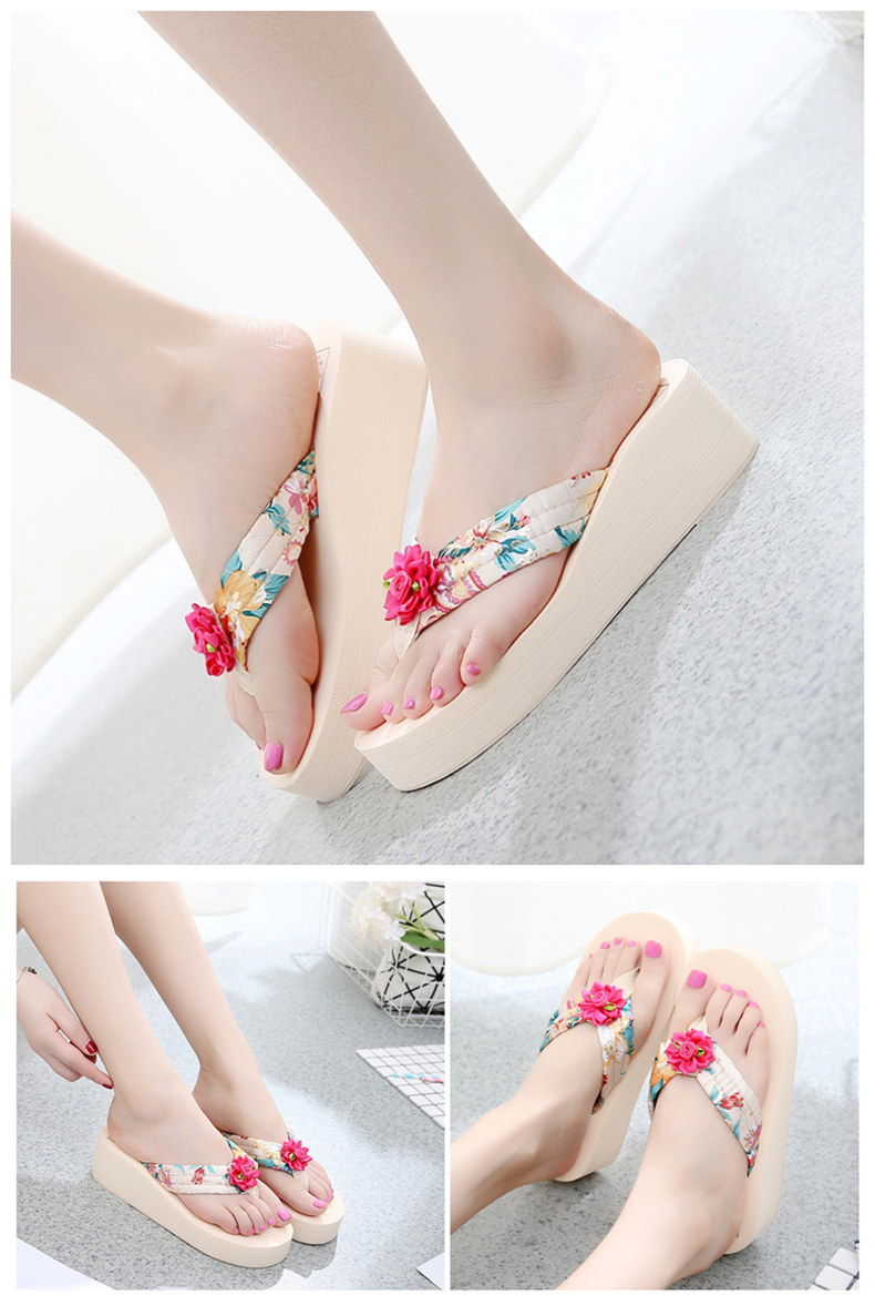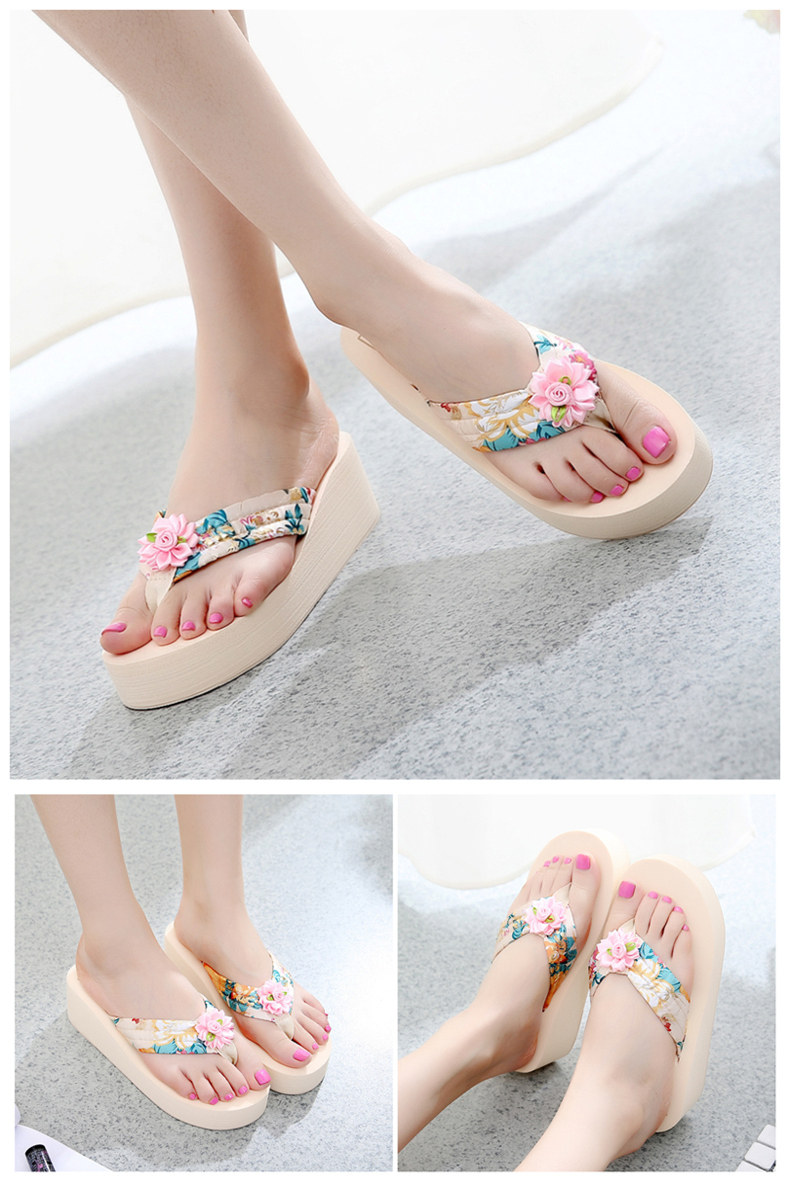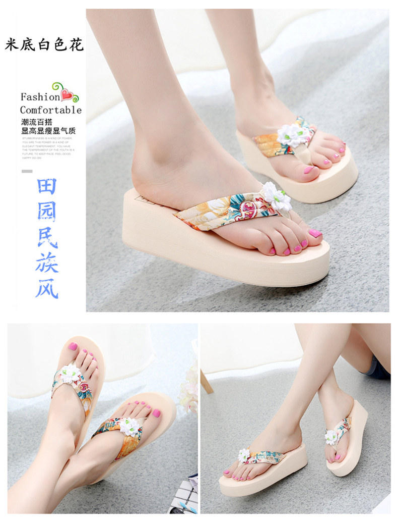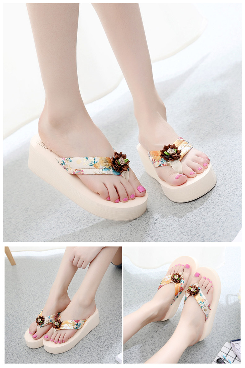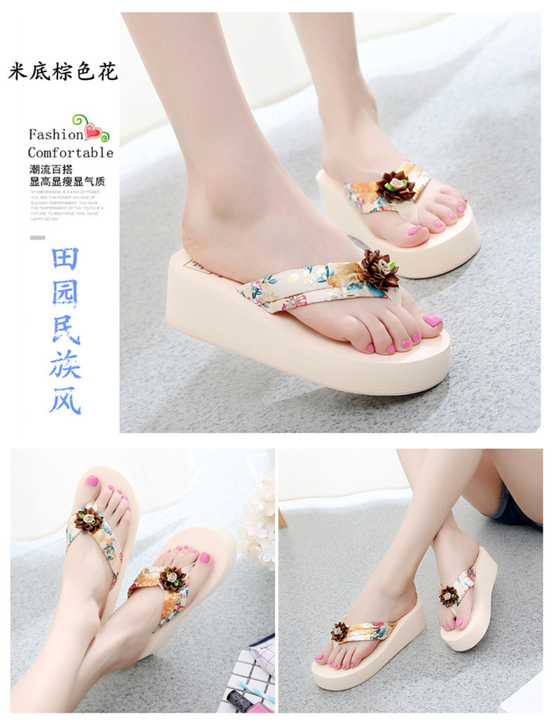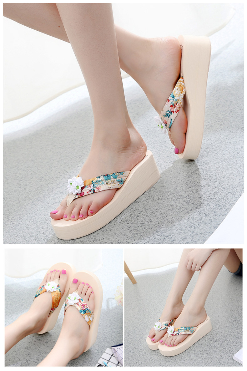简约绸缎凉拖鞋女夏波西米亚民族风沙滩鞋坡跟厚底人字拖韩版