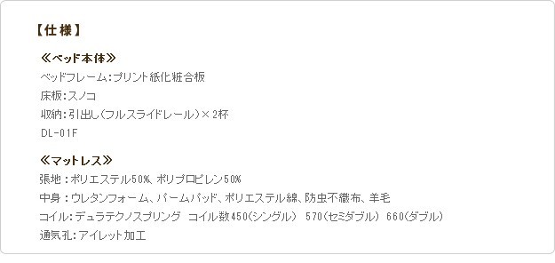 中身:ウレタンフォーム、パームパッド、ポリエステル綿、防虫不織布、羊毛