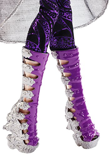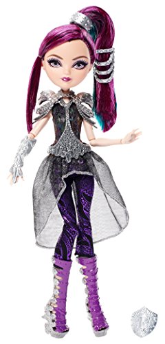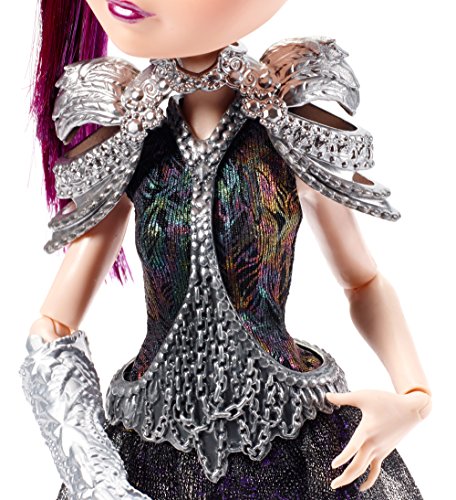 Join the Dragon Games with this Ever After High Raven Queen doll! In their most epic adventure yet, the teenage sons and daughters of the most famous fairytales ever see the return of dragons to Ever After High -- and with them the return of the most amazing sport ever after, Dragon Games! Raven Queen, Darling Charming and Holly O'Hair dolls are ready to play in the games. Each is dressed in her epic dragon-riding outfit, complete with metallic gear and signature details. Raven Queen doll, daughter of the Evil Queen from Snow White, looks wicked cool in a fableous outfit with glittery print, sheer fabric, tall riding boots and hairpiece in her signature streaked hair. Armor-inspired accessories are hexquisite. Plus, a matching shield doubles as a ring for you so you can join the games too! Fans can get the hexclusive scoop on the event of the year with the included storybook and capture epic poses using the doll stand. Let the games begin! Collect all of the Ever After High Dragon Games dolls to tell your own epic tale (each sold separately). Includes Raven Queen doll wearing fashions and accessories, doll stand, storybook and doll shield that doubles as a ring. Doll cannot stand alone. Colors and decorations may vary.Feature