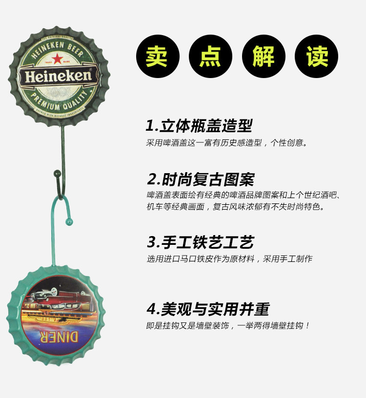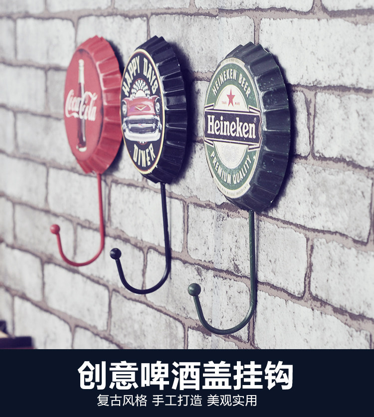 复古啤酒瓶盖壁挂挂钩个性软装饰品铁艺门后衣帽钩创意服装店挂衣