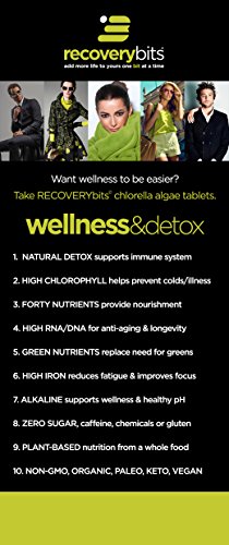 -. Feature : AS SEEN ON ABC's "SHARK TANK!" / SPEEDS ATHLETIC RECOVERY & BUILDS IMMUNE SYSTEM. Our Chlorella removes lactic acid during intense physical activities. Lactic acid causes pain, swelling and interferes with the optimal athletic performance. RECOVERYbits® are the fastest, easiest, most natural way to remove lactic acid, remove muscle soreness, prevent swelling and speed recovery. / EASY DETOX. Our Chlorella has the unique ability to remove all toxins including lead, mercury, lactic acid, radiation, alcohol, pesticides, preservatives and more. The United Nations used Chlorella/Spirulina to remove radiation from children after the Chernobyl disaster. Taking Chlorella every day is the same as giving your body a shower every day but from the inside. / 100% SAFE AND PURE. Our Chlorella tablets are tested by an FDA-approved USA laboratory and are guaranteed to have NO impurities, metals, pesticides, toxins or bacteria. Our Chlorella is grown organically in Taiwan in P.R.Istine fresh water tanks (We have the highest quality control certifications including ISO-9000 and GMP). / PROTEIN PACKED, NUTRIENT DENSE, VITAMIN-RICH. Our Spirulina tablets are a super-food with the highest concentration of protein in the world- 64% protein. The protein is already in amino acids, are 99% bio-available and absorbed immediately. A single serving contains 5 grams protein, 40 vitamins and minerals, including iron, Vitamins A, K and B complex and are so rich in Chlorophyll, they can be a replacement for eating greens.