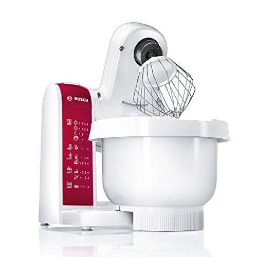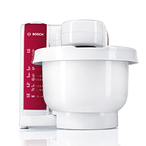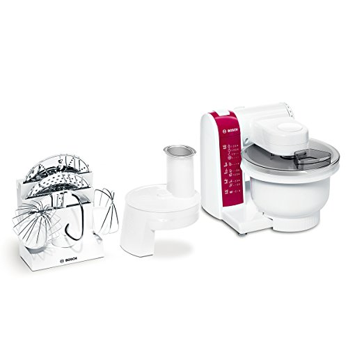 -. Title : Bosch MUM4825 Küchenmaschine (600 Watt, Kunststoff-Rührschüssel, Durchlaufschnitzler, Rezept DVD) weiß/rot