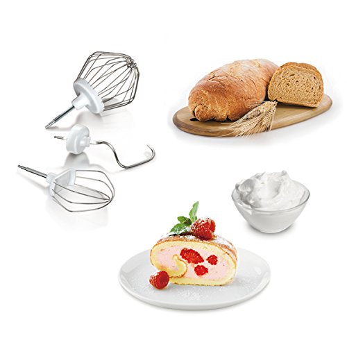 -. Feature : Einfach und sicher zu bedienen (Bosch Technik); leicht zu reinigen (Spülmaschinen geeignetes Zubehör) / Praktischer Alleskönner mit großer Rührschüssel (3,9l, max. Teigmenge 2,0 kg) / Vielseitig einsetzbar mit Patisserie-Set (Schlagbesen, Rührbesen, Knethaken) und nützlichem Durchlaufschnitzler mit 3 Scheiben zum Raspeln, Reiben und Schneiden - mit Zubehörträger / Dynamisches 3-D Rührsystem MultiMotion Drive für optimales Vermengen der Zutaten / Individuell erweiterbar mit einer Vielzahl an hochwertigem Zubehör sofern noch nicht im Lieferumfang enthalten z.B. Eisbereiter, Getreidemühle, Multimixer, SP.R.Itzgebäckvorsatz, Fleischwolf, Mixer, u.v.m.