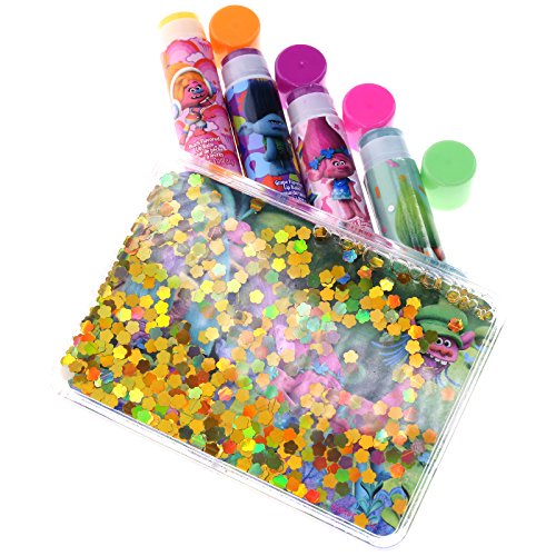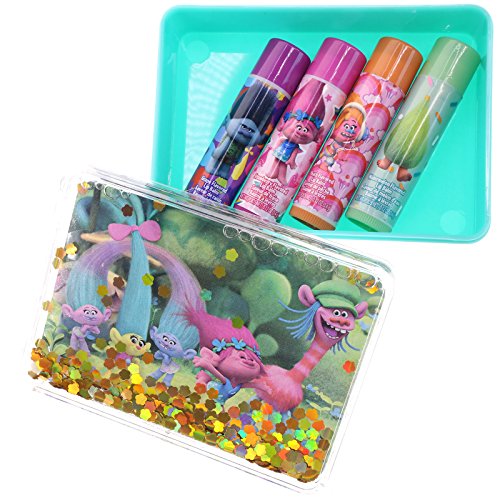 FAVORITE CHARACTERS Each lipstick is decorated with different characters from the movie Trolls. Kids will have fun expressing their style with this adorable makeup collection.