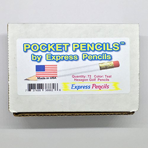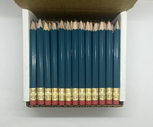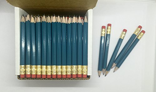 Half Pencils with Eraser - Golf, Classroom, Pew, Short, Mini, Non Toxic, Wooden, Hexagon, Sharpened, #2 Pencil, (Color - Teal), (Box of 48), Half Gross Golf Pocket Pencils ™