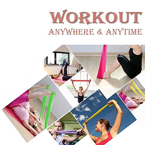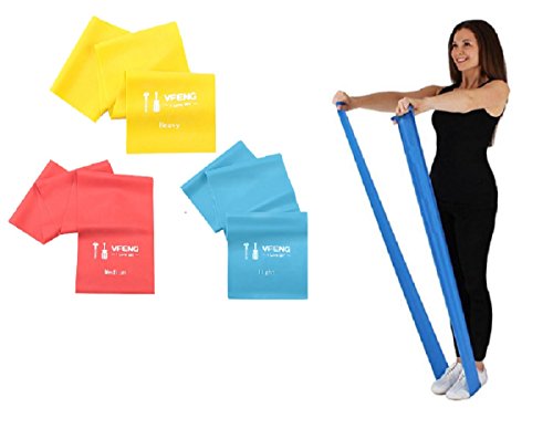 *Features: 1) Get a cost effective workout 2) One set with 3 bands for whole family member uses 3) Exercise your whole body 4) Exercise safely and effectively 5) Save on storage space 6) Exercise on the road or office or traveling 7) Develop your workouts step by step with different resistance level 8) Combine with other exercise equipment *Package Includes: --Set of one:Blue,Red and Yellow --Set of three 59-inch stretch bands provide 3 levels of resistance * Blue for light-150cm*15cm*0.35mm(Length*Width*Thick) *Red -150cm*15cm*0.4mm(Length*Width*Thick) * Yellow -150cm*15cm*0.5mm(Length*Width*Thick) 0