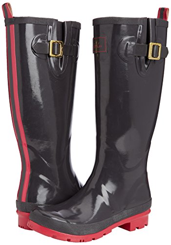 Make a splash with the Joules Fieldwelly Women's Rubber Rain Boots. These rain boots feature: made of waterproof rubber, printed rain boot featuring logo on shaft and expanding inset with adjustable buckle strap, pull on loop at back shaft and lugged rubber outsole, full print inside lining with removable cushioned insole. Joules is a British fashion and lifestyle brand that sells clothing, footwear, accessories and home products inspired by British country lifestyles. In 1989 Tom Joule established Joules.Feature
