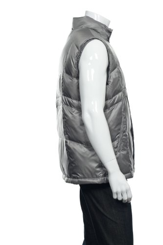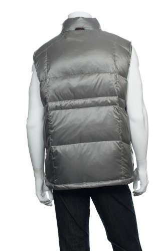 Brand: Tumi Color: Titanium Pattern: Solid Retail Price: $395 design: Puffy Vests Material: 100% Polyester Fill Material: 90% Down/ 10% Feathers Lining Material: 100% Nylon Label Care: Hand Wash (Cold) Made In: Vietnam Front design: Plain Front (Hidden) Closure: Full Collar design: Stand Collar Sleeve Length: Sleeveless Back design: Plain Vent design: None Hem design: Drawstring Front Pockets: 4 0