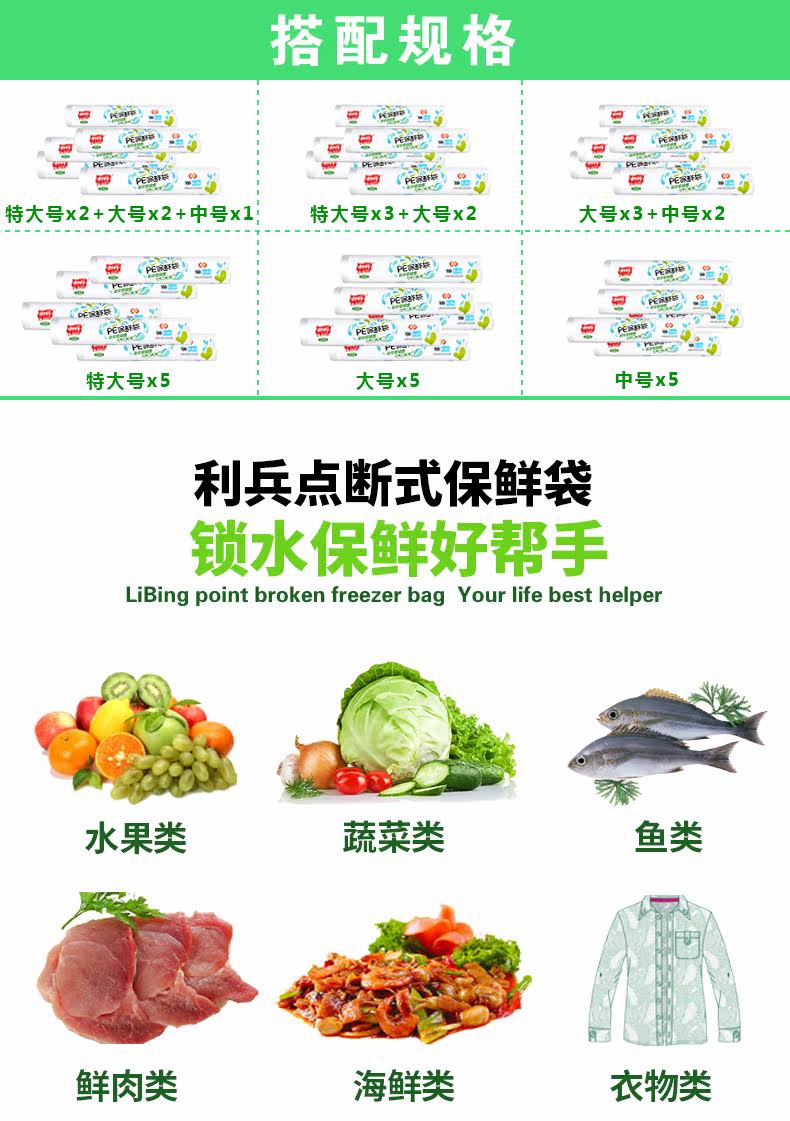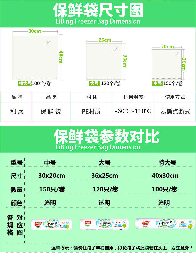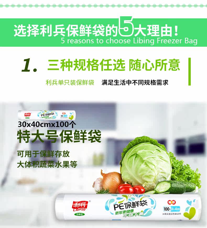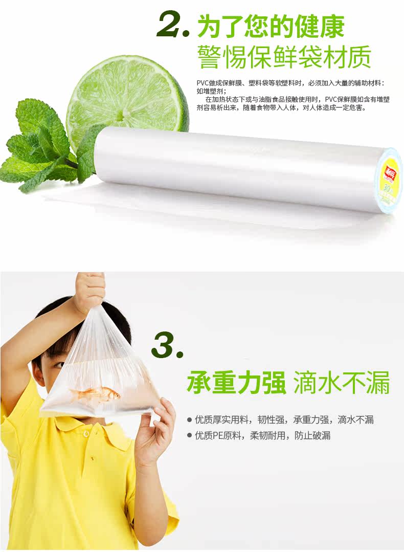 一次性保鲜袋家用加厚断点式环保食品果蔬袋连卷塑料袋大中小号