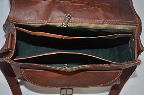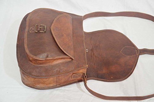 -. Feature : New genuine leather purse / bag handcrafted with vintage style / 1 front pocket, 3 inner compartment and 2 zipper pocket / Dimensions: 11 inches (length), 9 inches (height), 3 inches (depth) / Strong & durable brass fittings & buckles, quality zippers, heavy duty lining / Adjustable shoulder strap enough for crossbody