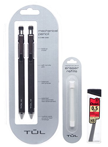 TUL 0.5mm Mechanical Pencils (1 2-pack), Eraser Refills (1 3-pack) & 30 Lead Refills Value Pack