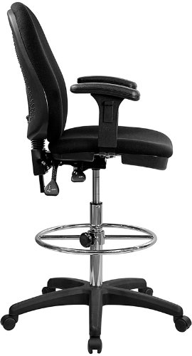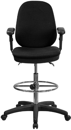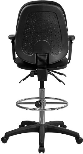 -. Feature : Triple Paddle Multi-Functional Drafting Stool / Black Fabric Upholstery / Back Pitch Adjustment Control / Back Height Adjustment / Seat Tilt Adjustment Control