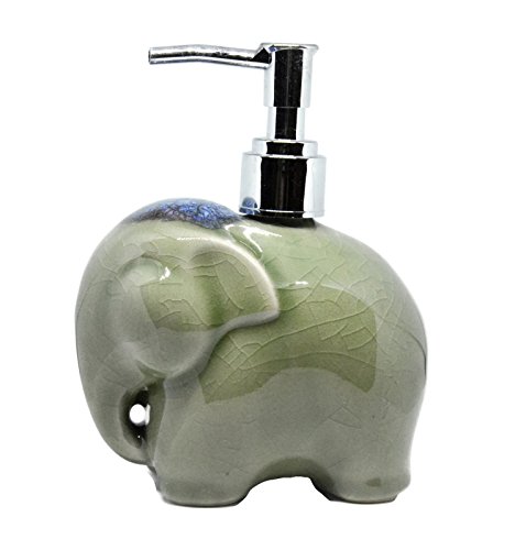 Thai Elephant Handicraft Porcelain Ceramic Pump Soap Shampoo Dispenser Bathroom Countertop Home Decor Collection Gift