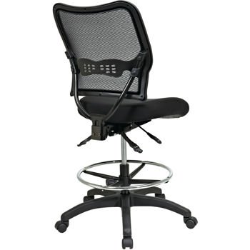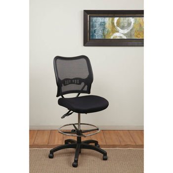 -. Binding : Office Product -. Brand : Office Star -. Color : Black -. Feature : Features: Thick Black Padded Mesh Seat and Air Grid® Back with Built-in Lumbar Support One Touch Pneumatic Seat Height Adjustment Dual Function Control / Adjustable Chrome Foot ring Nylon Base with Dual Wheel Carpet Casters / Seat Size: 19.5"W x 20"D x 4"T Back Size: 20"W x 19"H Overall Size: 45"H x 20"W x 26"D / Seat Height Min: 19.75" Seat Height Max: 27.25" Seat Travel: 7.5" / Weight: 40 lbs. -. Label : Office Star -. Manufacturer : Office Star -. PackageQuantity : 1 -. ProductGroup : Office Product -. ProductTypeName : OFFICE_PRODUCTS -. Publisher : Office Star -. Studio : Office Star -. Title : Deluxe Air Grid Back Drafting Chair with Mesh Seat and Dual Function Control