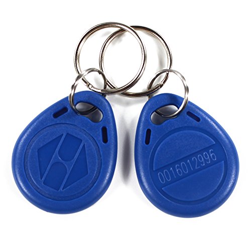 -. Feature : Includes 20Pieces 125KHz EM4100 Key Fobs Blue(READ ONLY, NOT RE-WRITABLE), Dimensions: L36 x W29 x T6.6mm, With 10 laser engraved ID numbers on back side. / Built with waterproof durable ABS material, all key fobs come attached with a metal key ring. Each key fob is pre-programmed with 10 unique digit ID numbers. / These keyfobs are not 26 Bit Proximity Key Fobs Weigand Prox Keyfobs, and can not compatible with ISOProx 1386 1326 H10301 format readers. / Compatible with standard EM ID access devices or ID readers, but can NOT work with HF, UHF reader and encrypted readers, such as, HID, Cobra, APCiK, Paradox, Radio, Honeywell, Kaba, Isonas, etc. / Widely used for access control system to implement the pre-set function such as door open, password management. Please check your lock and lock system's parameter, making sure their working frequency is 125KHz, and could support EM4100 chip. Or the keyfobs won't work.