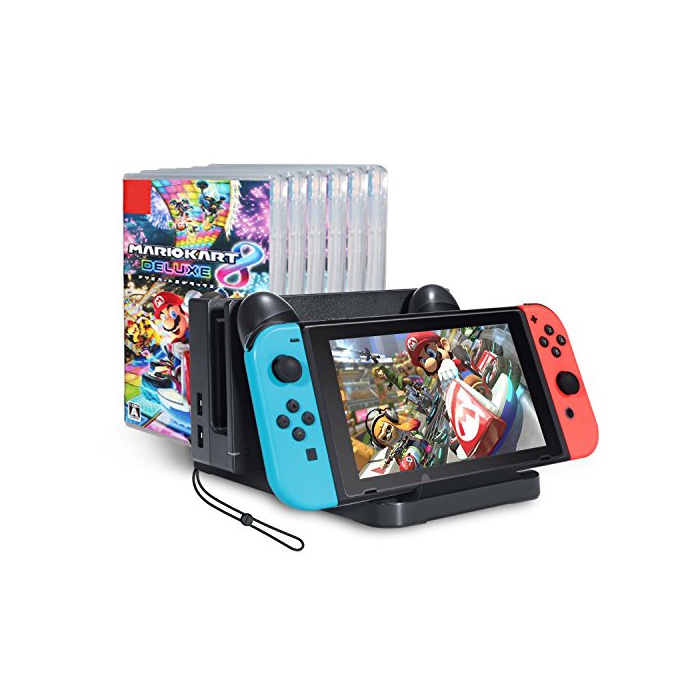 EForBuddy Nintendo Switch수납 스탠드 다기능종 두어 스탠드 본체 게임 소프트 수납 (6매까지 가능) 성스페이스 Switch 충전기 Pro콘트롤러 충전 Joy-Con스트랩&Swi