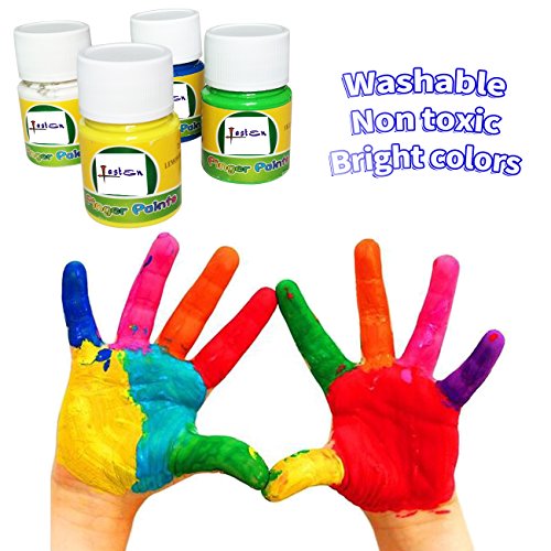 HOW TO USE AND CLEAN - Finger paint for toddlers refer to the children by hand directly (including fingertips, fingers, palms, the bank of the hand, hand side) to take some appropriate pigments, then through fingerprints , palm prints, doodles and other forms work on the paper. No need to learn any technique, just to point, press, drag and pull can freely show your children's rich imagination. These finger paint easily wash away with water or soap let you can have fun with it..
