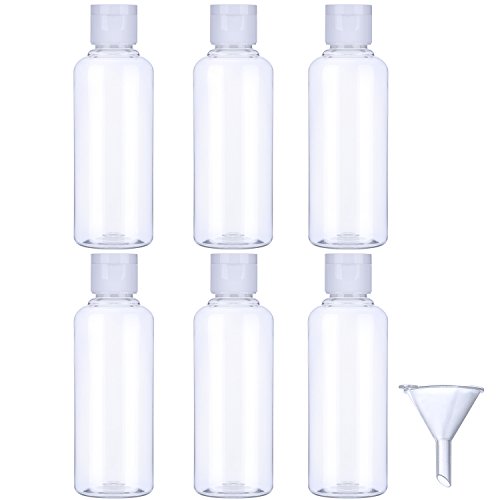 Hotop 6 pack 100 ml transparent plastic air flight travel bottle set with small funnel for flight, airport, holiday 6 Pack travel bottles: These empty cosmetic bottles and funnel are packed in a clear and waterproof plastic bag; The sizes are within the acceptable limits of airlines, easy to carry. Come with a funnel: The funnel help you to transfer your make-ups more easier; These travel bottle set is suitable for most bathroom products and cosmetics. A wide range of application: Portable clear travel bottles are suitable for liquid, shampoo, conditioner, oils, detergents and so on; Good for flight travel, camping, business trip, etc. Specifications: Capacity: 100 ml Color: clear bottle with white lid Material: plastic Package includes: 6 x 100 ml Flip-cap bottles 1 x Funnel 0