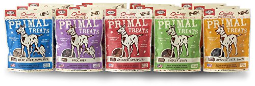 The Primal Pet Foods treat line was created for dogs and cats with the goal of providing wholesome, human-grade snacks containing no preservatives, gluten or grain. All Primal Treats are produced using USDA meats, poultry and game raised in the United States and New Zealand without antibiotics or added hormones. Our treats are available in a variety of cooking styles, as well as protein sources including venison, buffalo, turkey and chicken. Primal Treats are produced using low-temperature, slow-cooking techniques such as freeze-drying and slow roasting, yielding high-density nutrition in a shelf-stable snack product. All Primal Treats are single-source proteins and offer a healthy choice for all pets, especially those with food allergies. We recommend our treats to be used as a snack alternative, as well as for training and obedience rewards..Feature