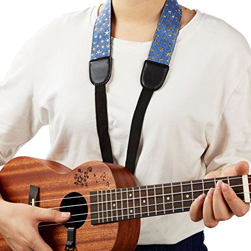 -. Feature : 1.5" width soft canvas silk screen P.R.Inted Cotton provides maximum comfort on your body. / 2 strong ABS buckles are applied to easily adjust the strap length from 22.4"(57cm) to 26.4"(67cm) , soft leather parts suit for long-term usage; / High quality ABS hook with rounded edges to protect your instrument's finish and sturdily latch on to the sound-hole of the ukulele. / Hawaiian style & Button-Free cross-chest strap is a "must have " product for ukulele players, fit all ukulele sizes and shapes :soprano, concert ,tenor, baritone,pineapple etc. / 100% satisfaction guarantee. No return reasons asked, 100% money back policy.