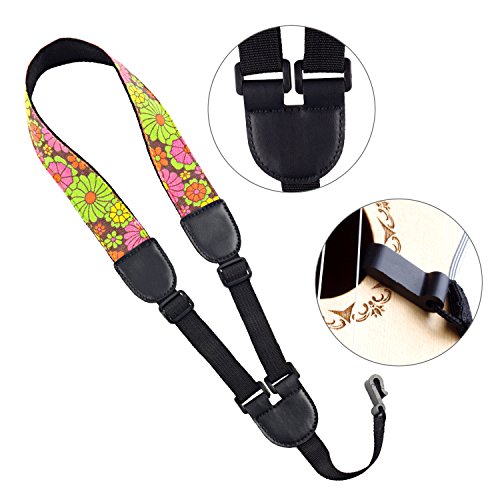 -. Title : Mugig Ukulele Strap, Hootenanny Style Adjustable Soft Cotton Instrument Strap with Colorful Flower P.R.Inting