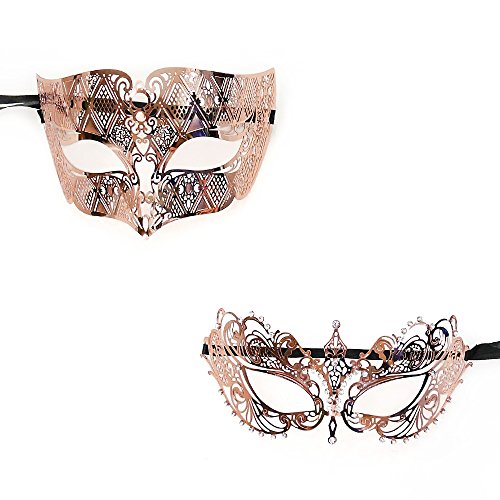 -. Brand : Beyondmasquerade -. Color : Rose Gold -. Department : womens -. EAN : 0609015814901 -. Feature : Included: His & Hers Set (2 masks) / Size Measurement:One size fits almost all facial features. / Materials: Quality Toned Handcrafted Metal, Rhinestones / Secured comfortably with two sturdy silk ties, one on each side of the mask for easy adjustment and comfortable wear -. ProductGroup : Apparel -. ProductTypeName : ADULT_COSTUME -. Size : One Size -. Title : Beyondmasquerade Couples Masquerade Mask Rose Gold -. UPC : 609015814901