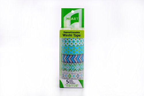 HIART Repositionable Washi Tape, Southwest Sizzle, Green, Set of 5