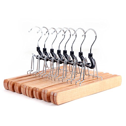 -. Title : TMAX Solid Wooden Collection Slack Hanger, Skirt Hangers, Natural Polished, 8 Pack